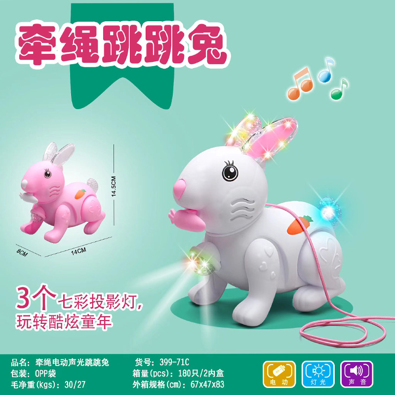 399-71C 전기 로프 라이트 음악 점프 무 토끼는 현을 당겨 야간 시장 마구간 장난감 도매를 걸을 수 있습니다.스토어 가기