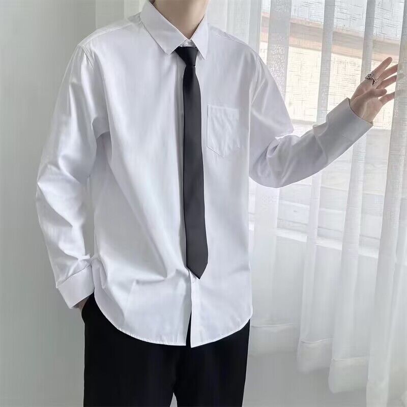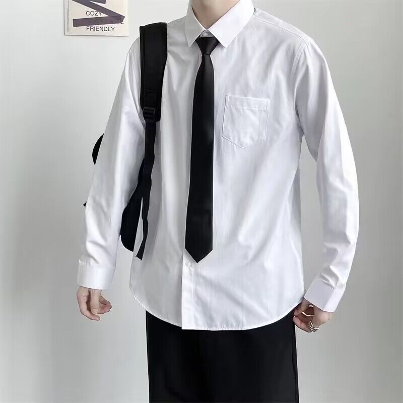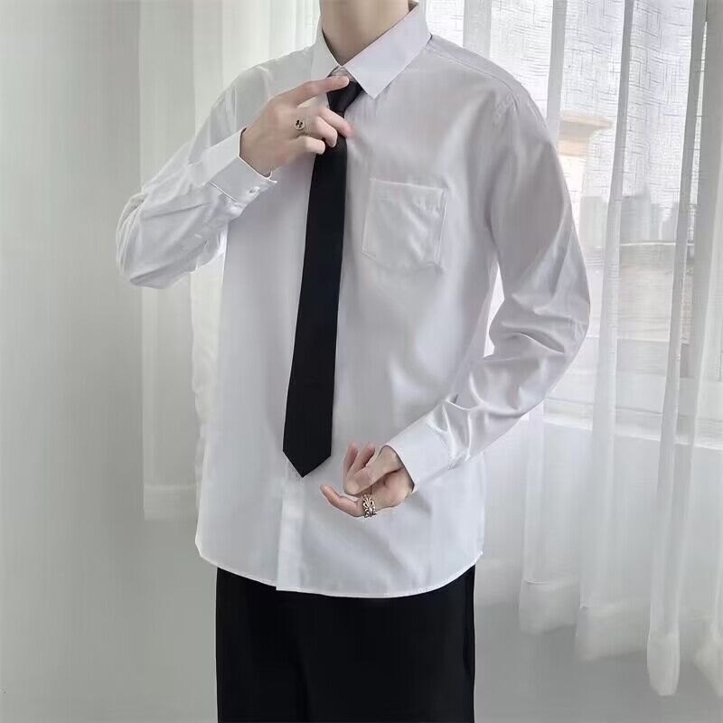 2024 새로운 DK 단색 긴 소매 셔츠 소년 학생 대학 스타일 흰색 잘 생긴 셔츠 옷 남성복스토어 가기
