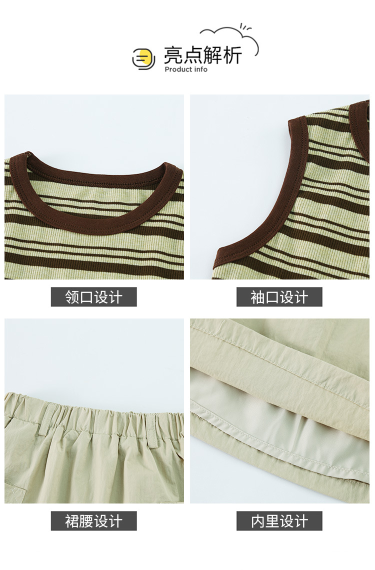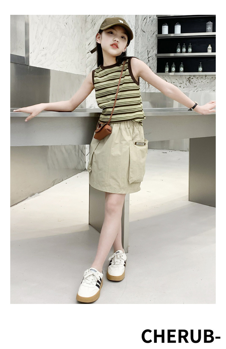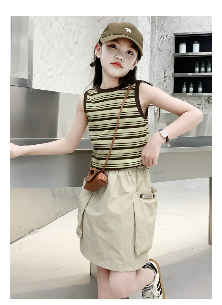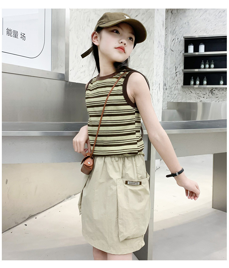 소녀 세트 여름 새로운 2024 중 큰 어린이 패션 폭발 줄무늬 니트 조끼 어린이 캐주얼 작업복 스커트스토어 가기