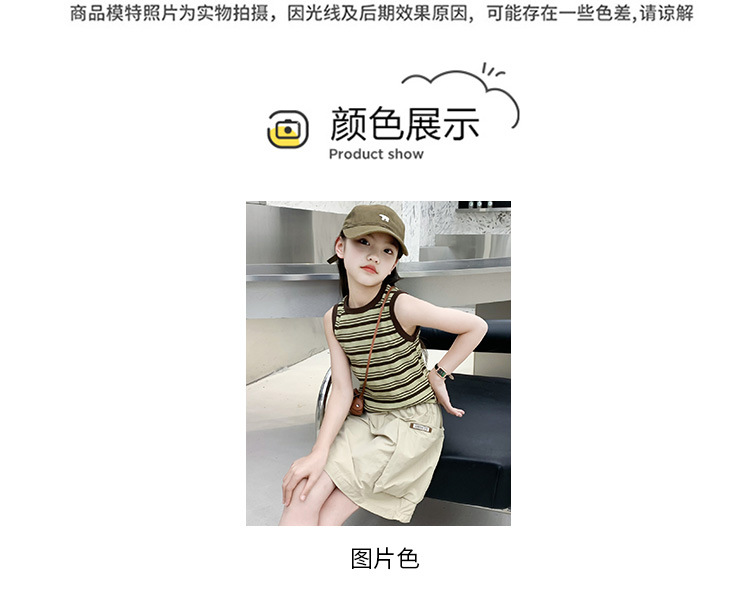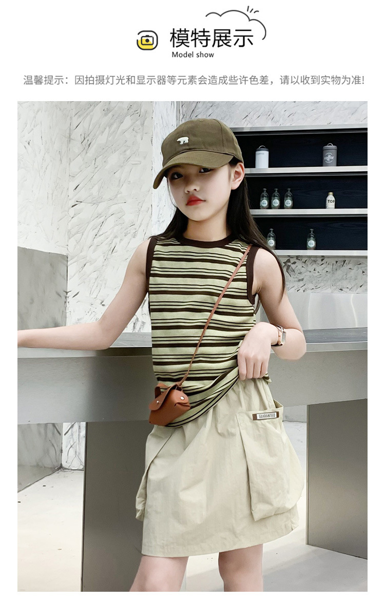 소녀 세트 여름 새로운 2024 중 큰 어린이 패션 폭발 줄무늬 니트 조끼 어린이 캐주얼 작업복 스커트