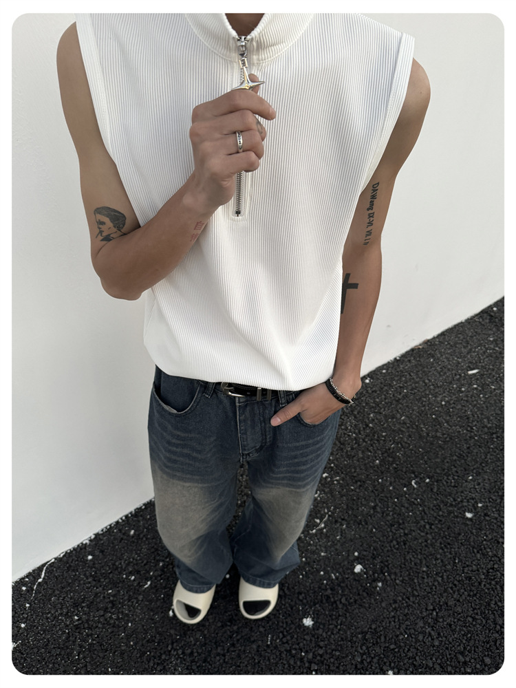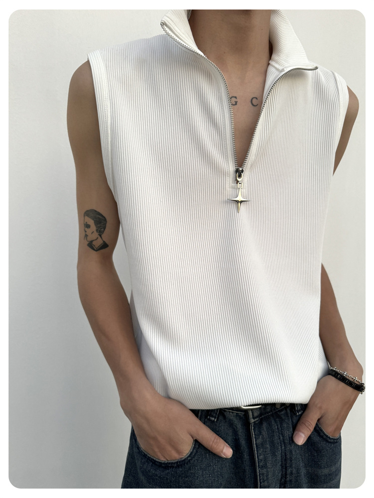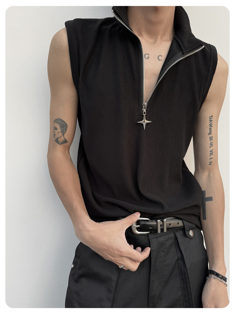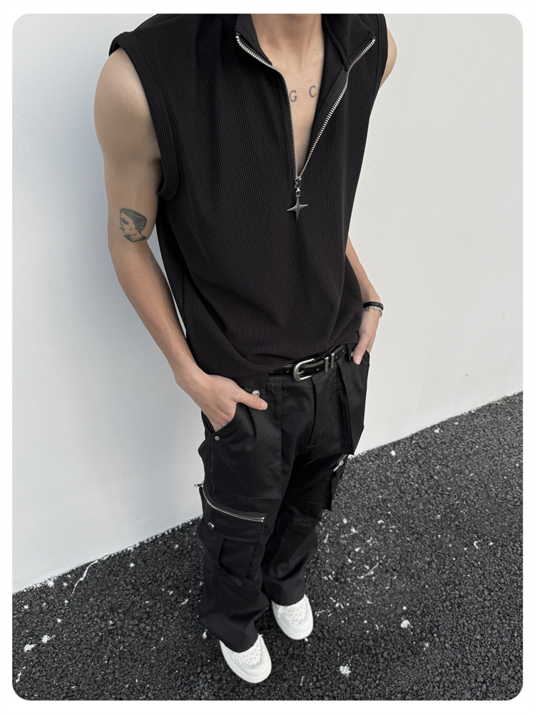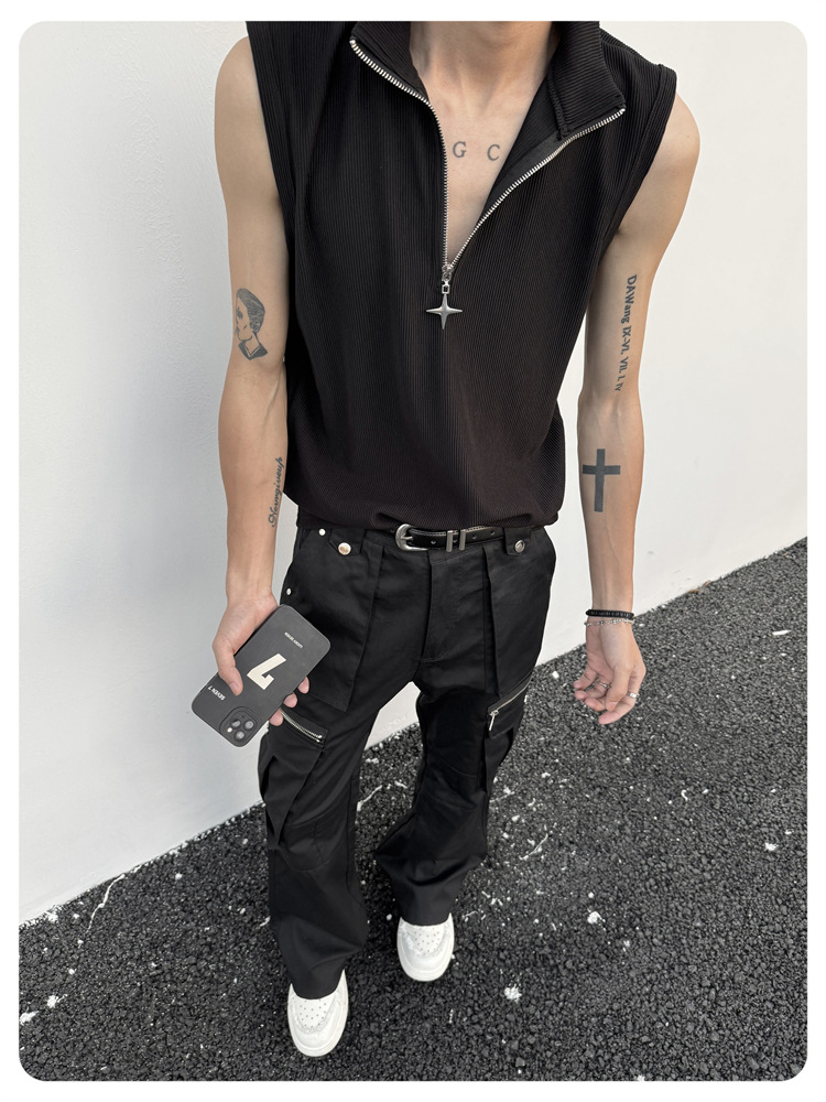 여름 디아블로 스타일 틈새 디자인 센스 인 타이드 브랜드 오각형 지퍼 패드 조끼 남성용 민소매 조끼스토어 가기