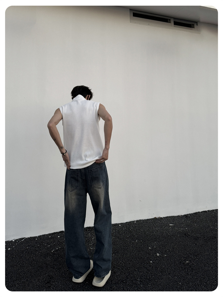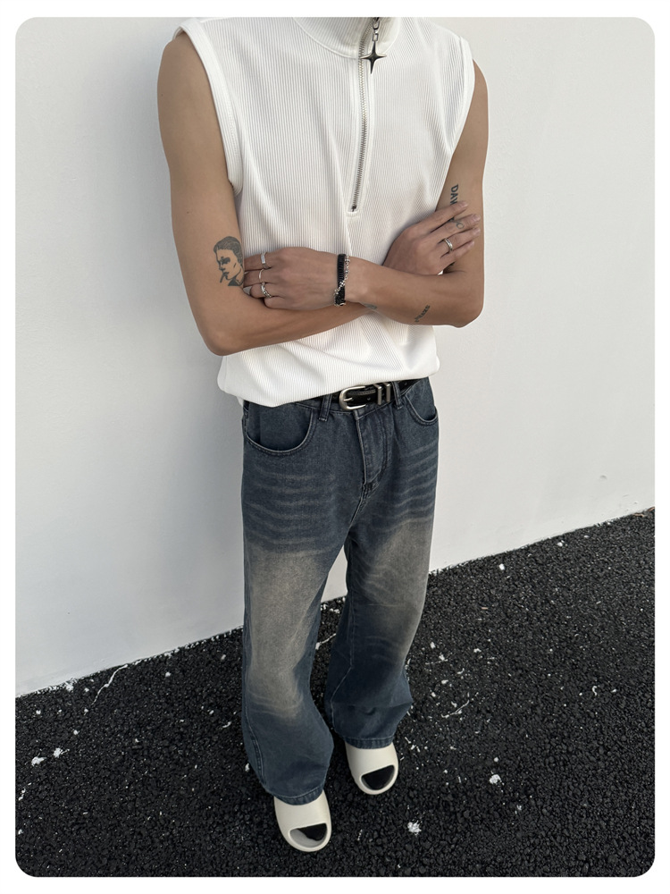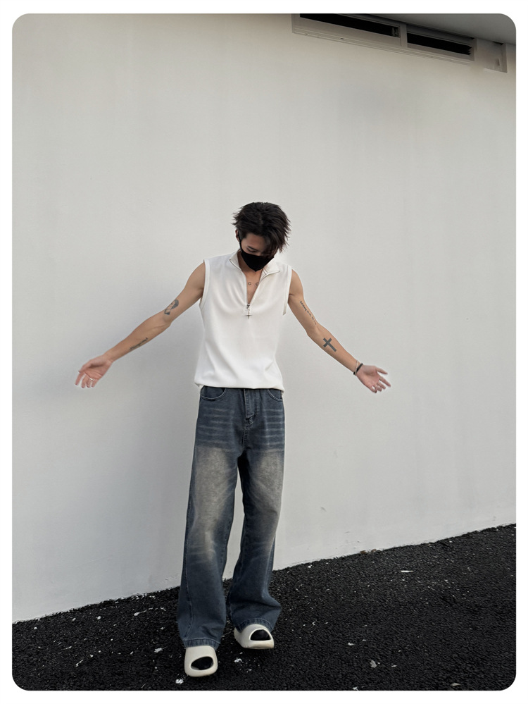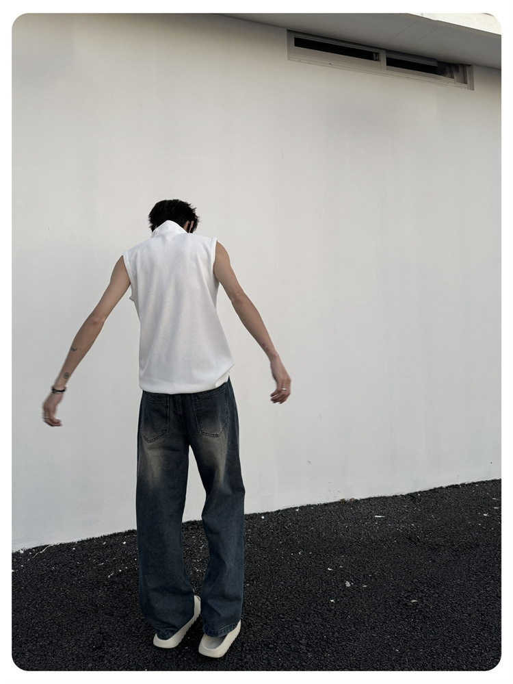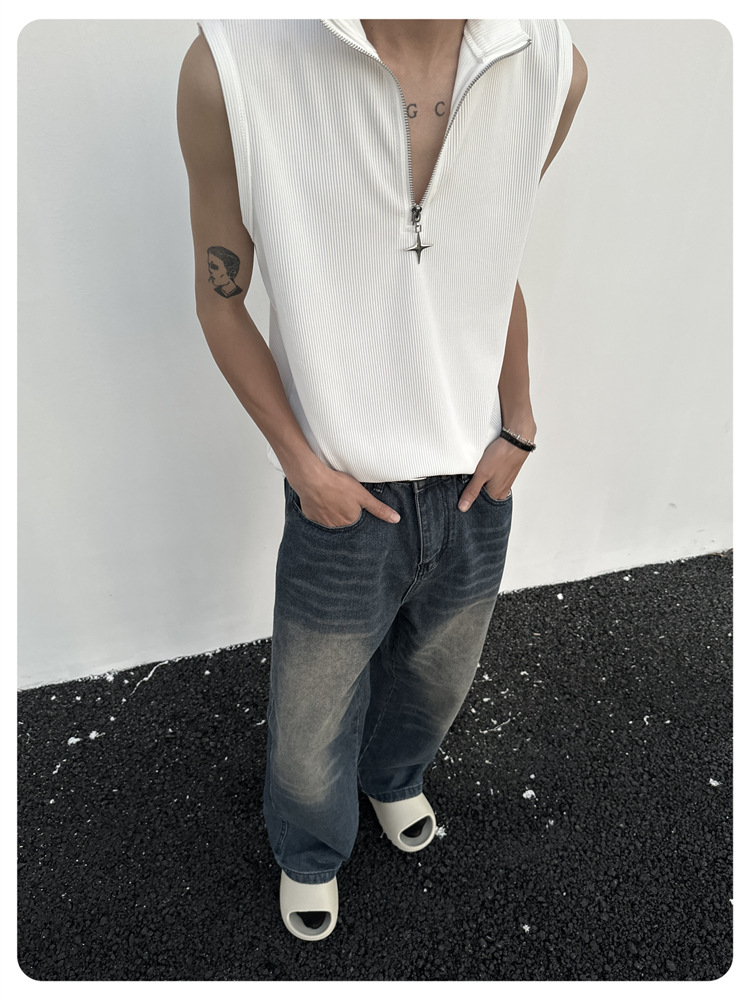 여름 디아블로 스타일 틈새 디자인 센스 인 타이드 브랜드 오각형 지퍼 패드 조끼 남성용 민소매 조끼스토어 가기