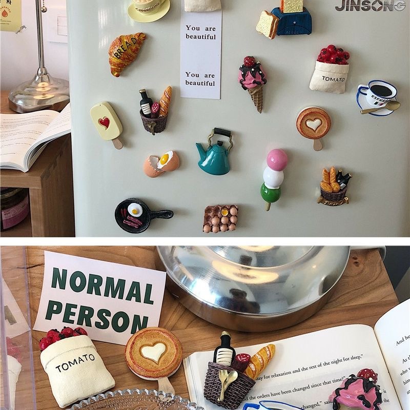 * 아름다운 작은 이모 * 냉장고 스티커 3 차원 창조적 인 자기 페이스트 시뮬레이션 음식 빵 메시지 스티커 자석