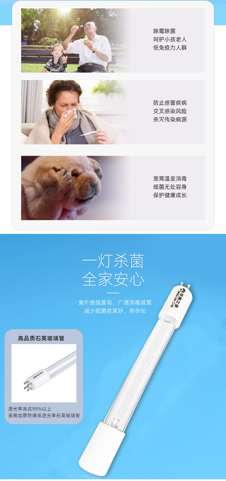 소형 전력 5W-40W 단일단자 UV 살균등, 공기청정기, 수처리 살균 캐비닛, 어항용스토어 가기