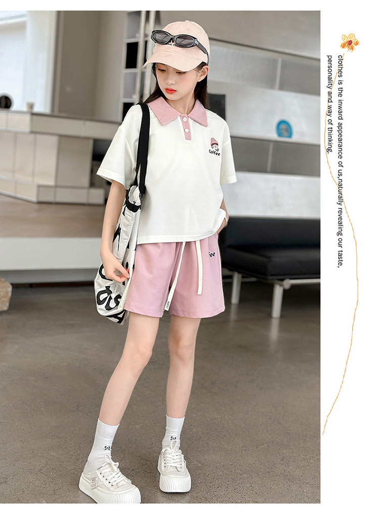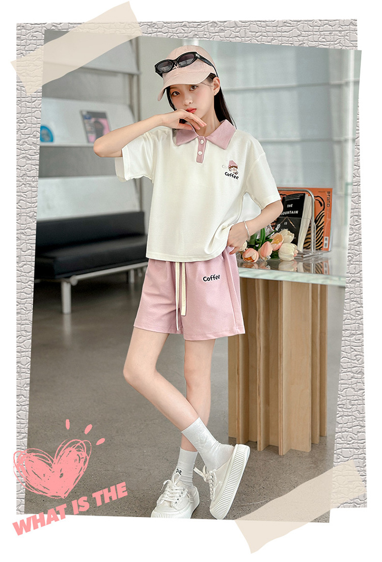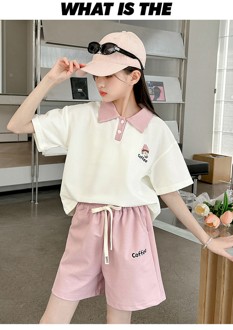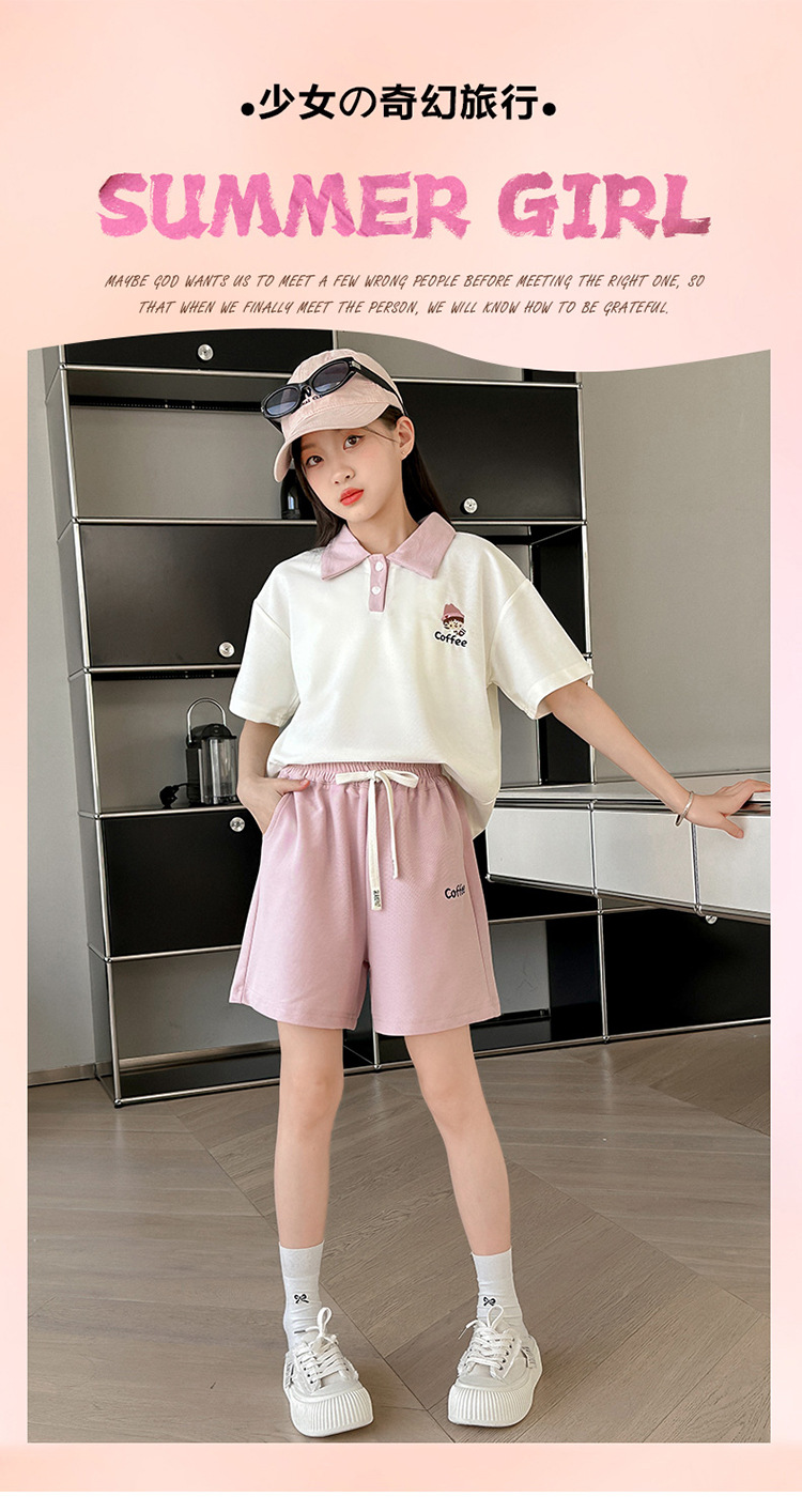 여자 2024 새로운 여름 폴로 새로운 소매 반바지 세트 공주 스타일 여름 유행 캐주얼 스포츠 투피스 세트스토어 가기
