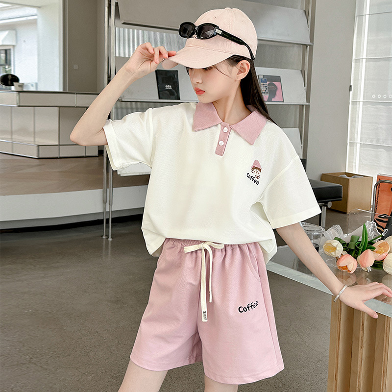 여자 2024 새로운 여름 폴로 새로운 소매 반바지 세트 공주 스타일 여름 유행 캐주얼 스포츠 투피스 세트