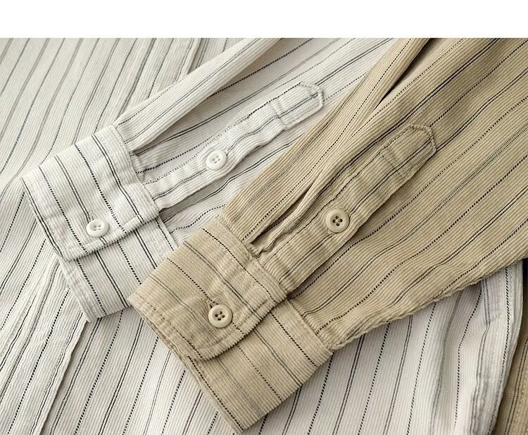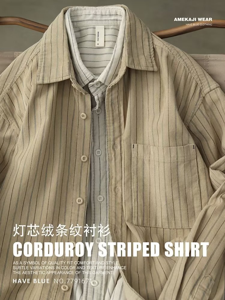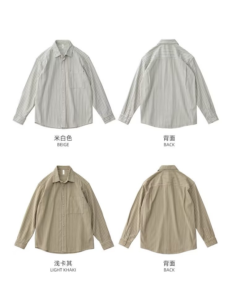 남성용 일본 줄무늬 셔츠, 봄, 가을 스타일, 청소년 트렌드, 복고풍, 가볍고 성숙한 스타일, 긴팔 캐주얼 셔츠 재킷