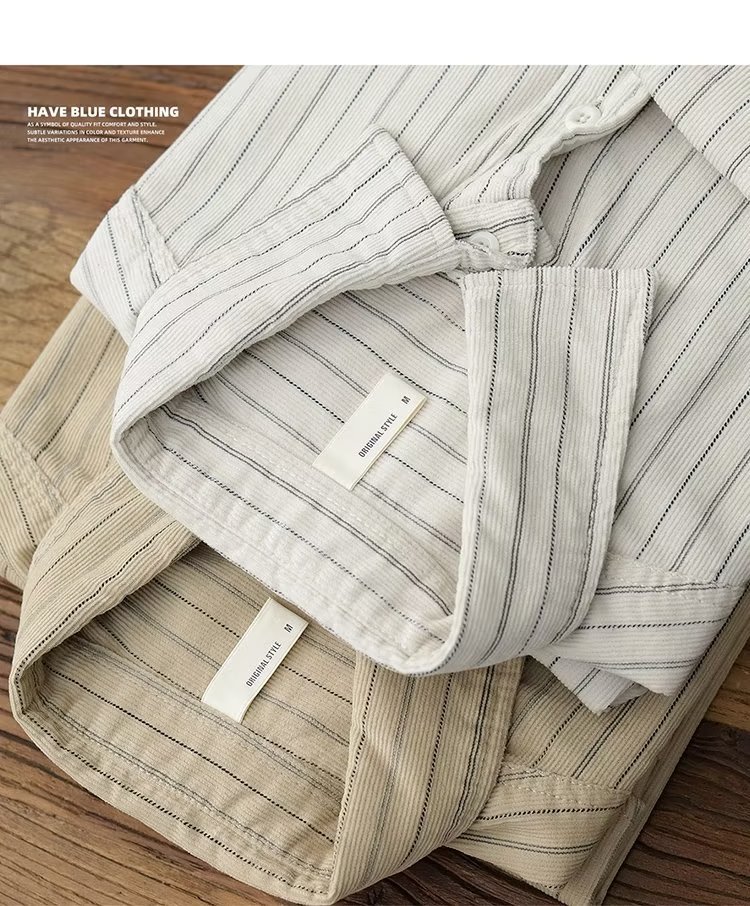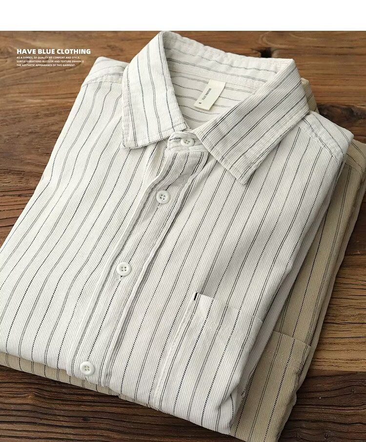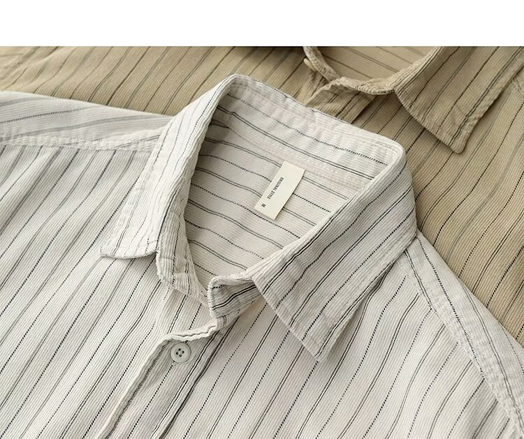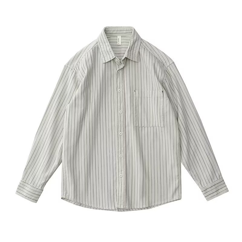 남성용 일본 줄무늬 셔츠, 봄, 가을 스타일, 청소년 트렌드, 복고풍, 가볍고 성숙한 스타일, 긴팔 캐주얼 셔츠 재킷스토어 가기