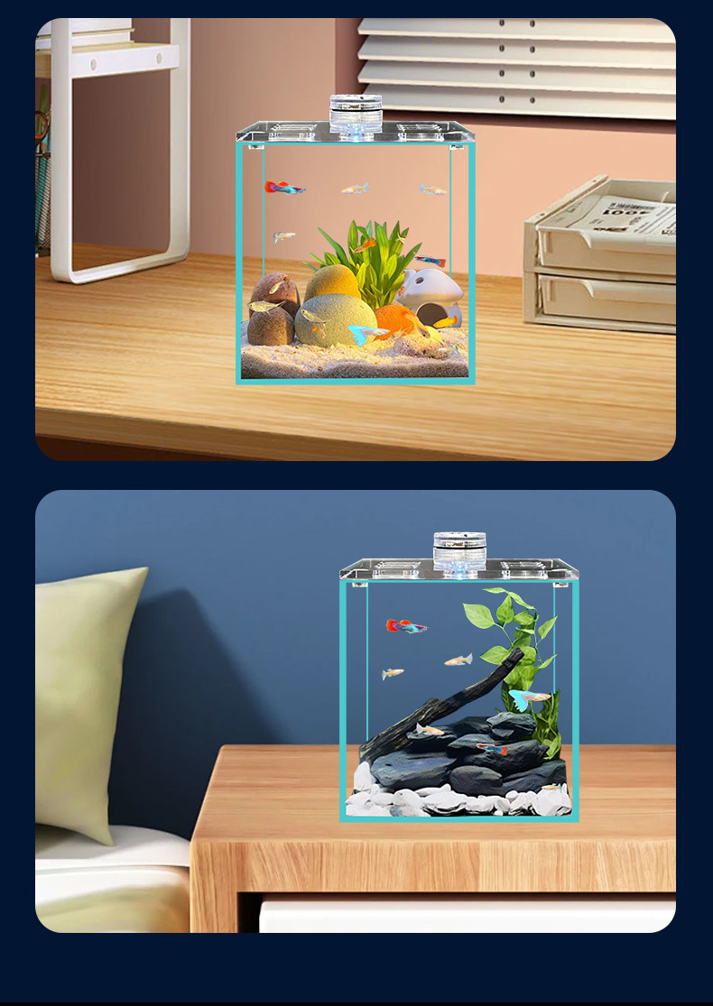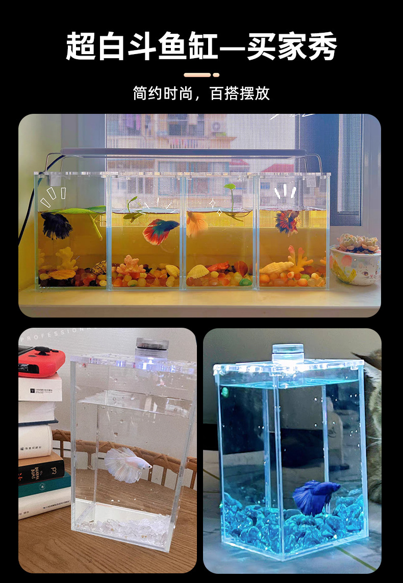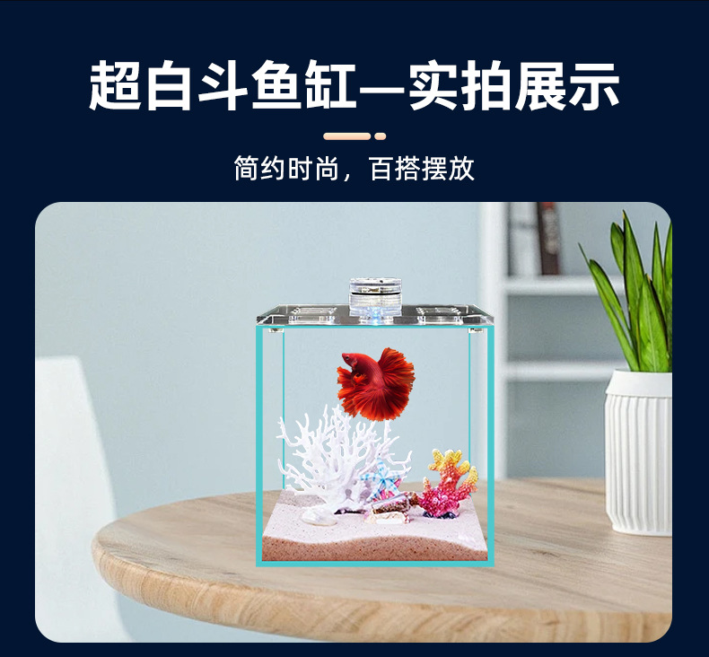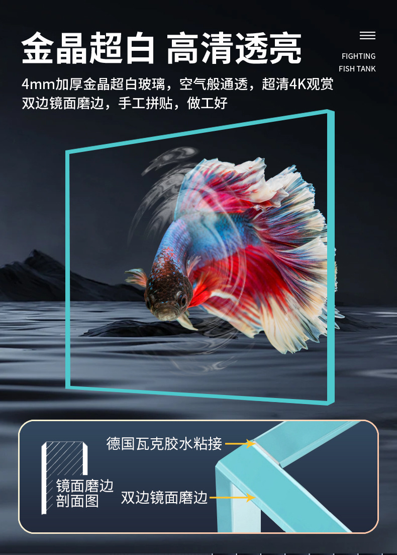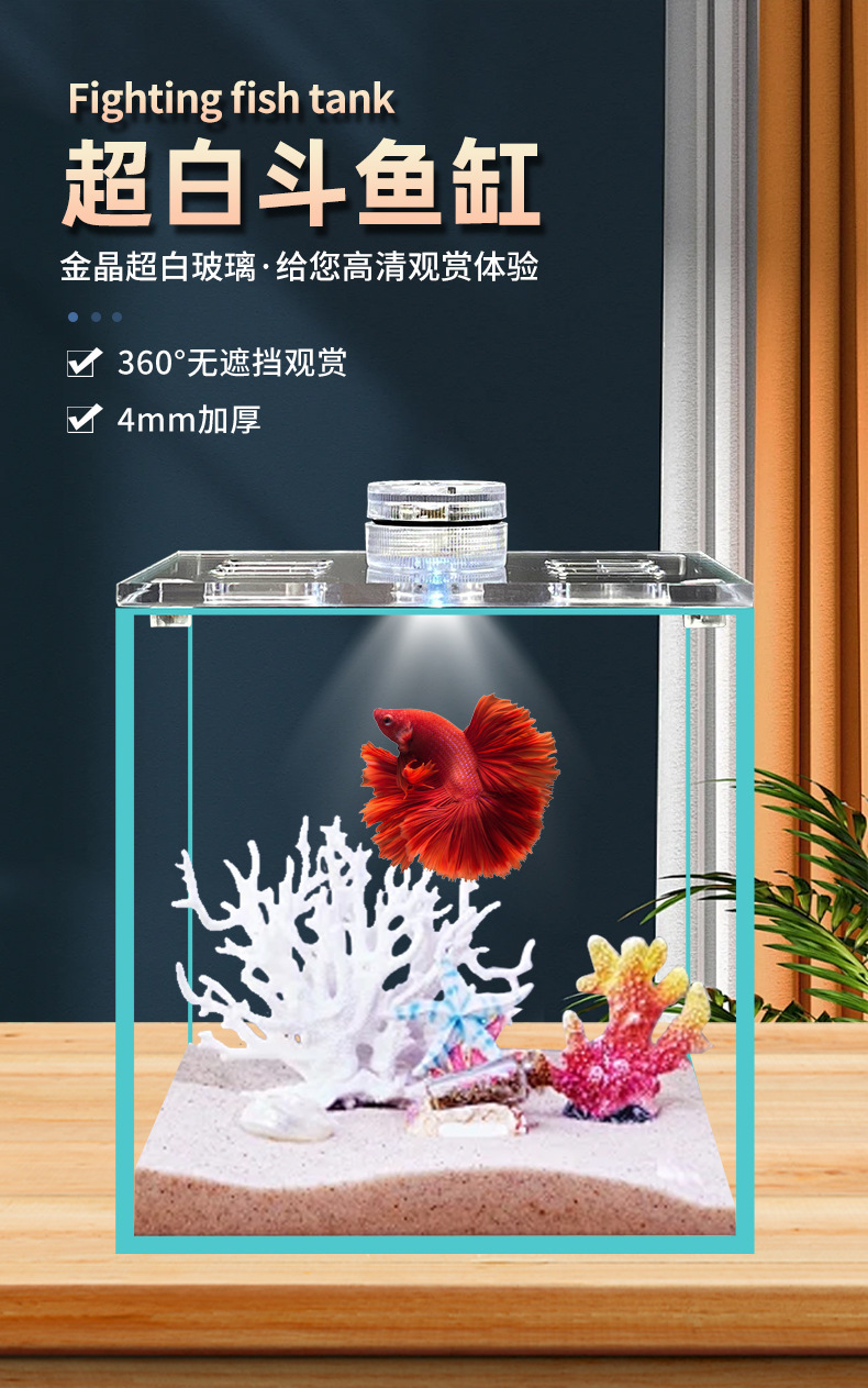 신제품 공급 태국 싸우는 물고기 디스플레이 물고기 탱크 골드 크리스탈 슈퍼 화이트 유리 작은 물고기 탱크 데스크탑 풍경 전체 양동이 수조스토어 가기