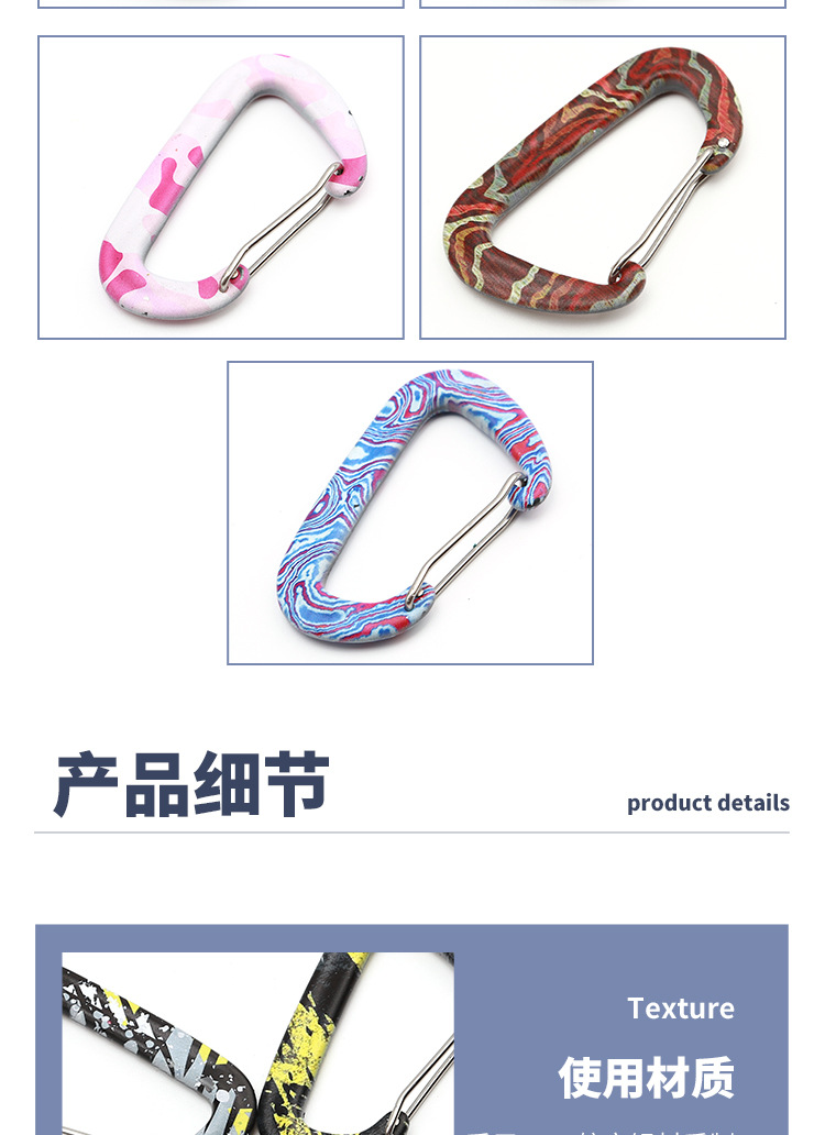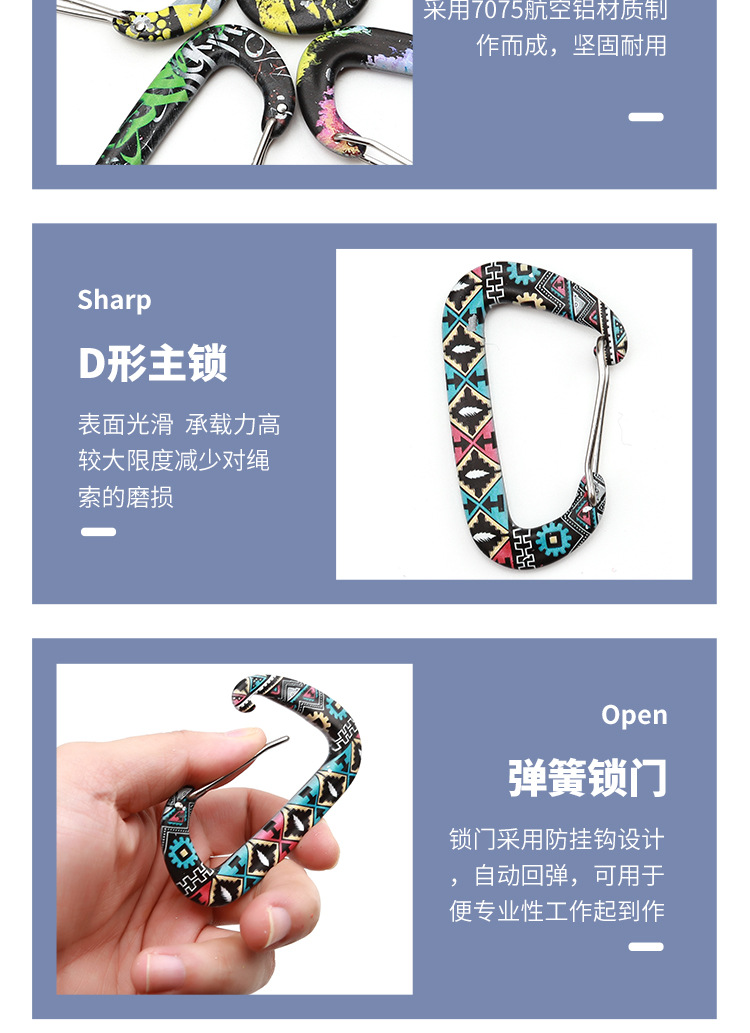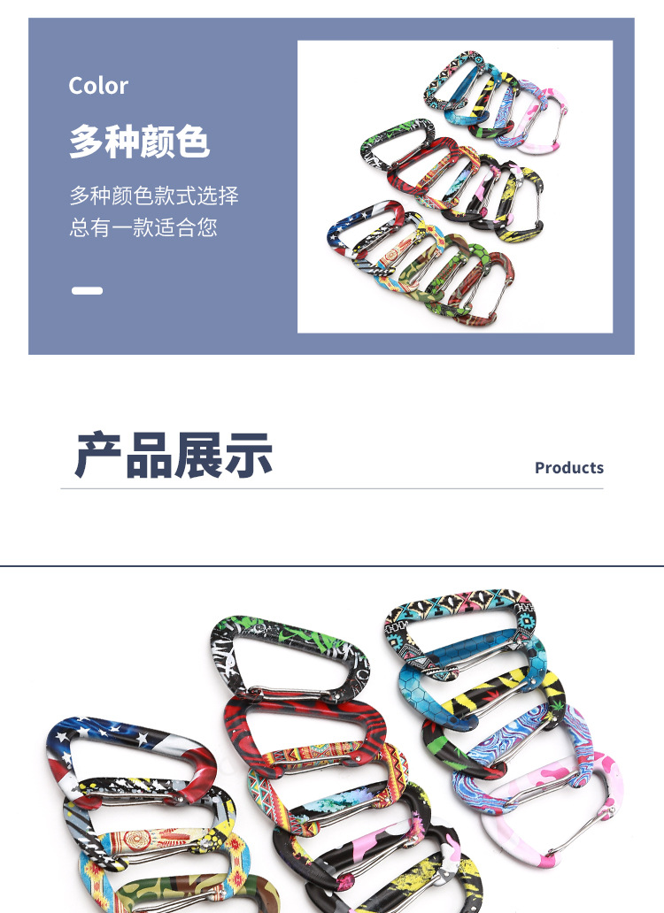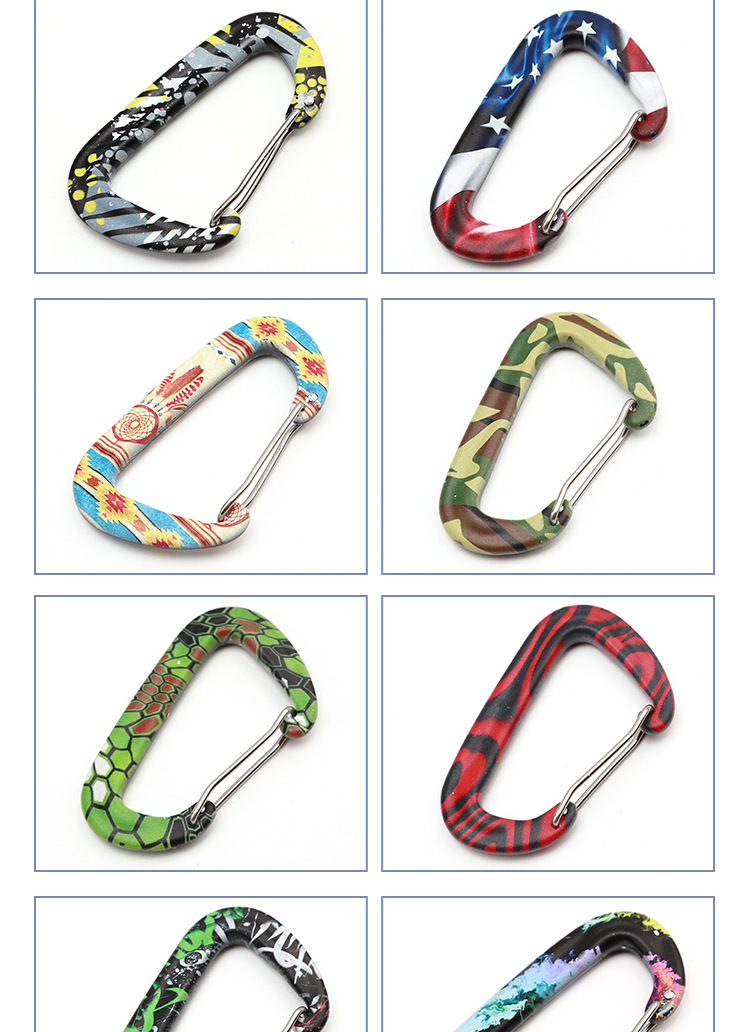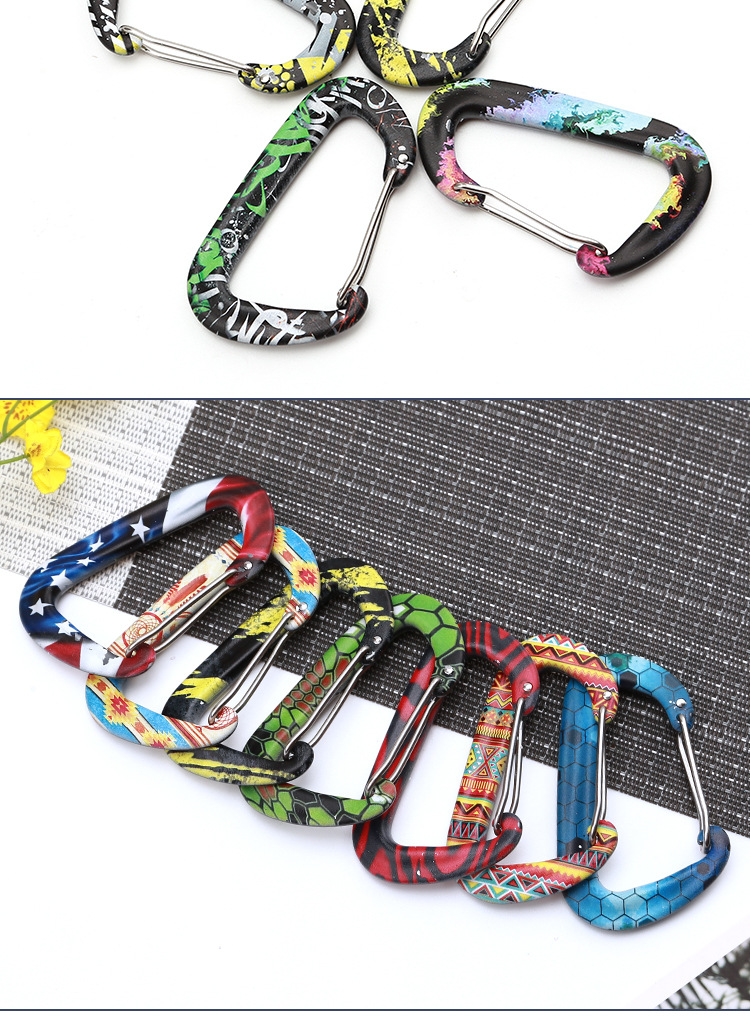 소스 도매 D 자형 대담한 색상 긴 너트 잠금 알루미늄 합금 카라비너 백 버클 텐트 편리한 후크스토어 가기