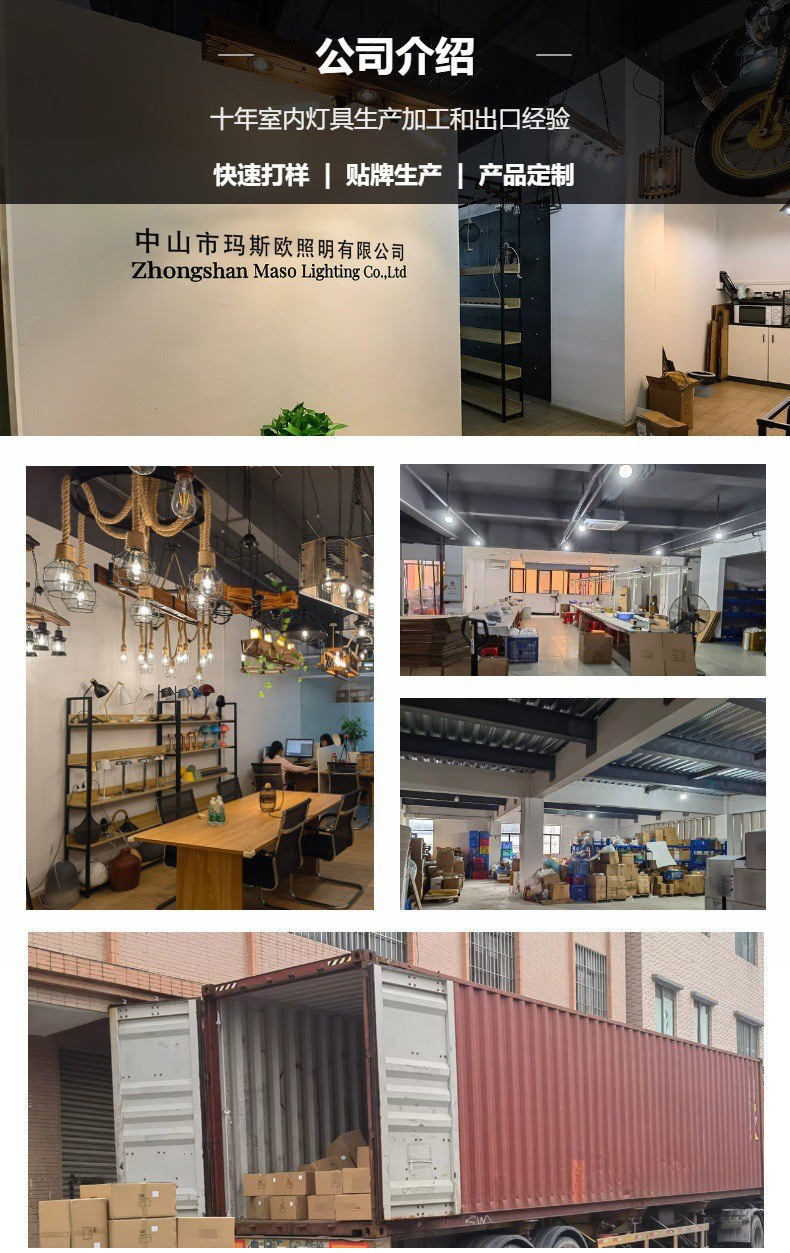 玛斯欧照明有限公司成立于2019年,自有工厂玛斯欧灯饰厂则于2016年建立,致力于工贸一体化的经营。我们专注于生产和销售室内灯饰产品,并积极参与进出口贸易。