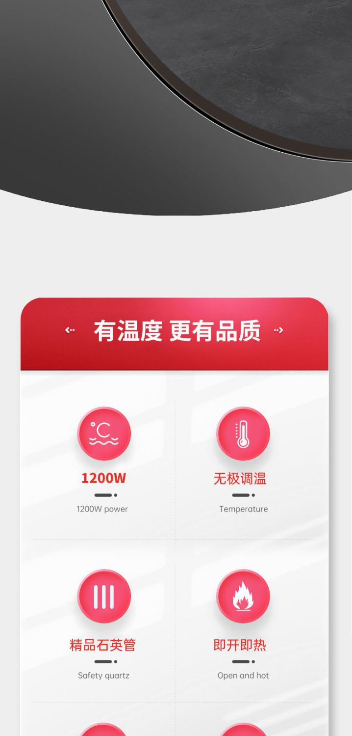 • 검정과 빨강-무한 온도 조절-상위 6 개 가열 튜브-1200W