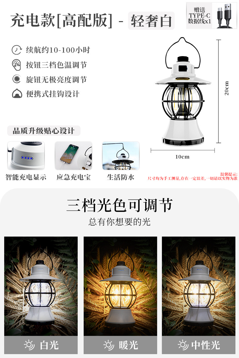 팬 라이트 캠핑 라이트 야외 비상 조명 LED Stall 야간 시장 조명 방수 자기 충전식 텐트 라이트