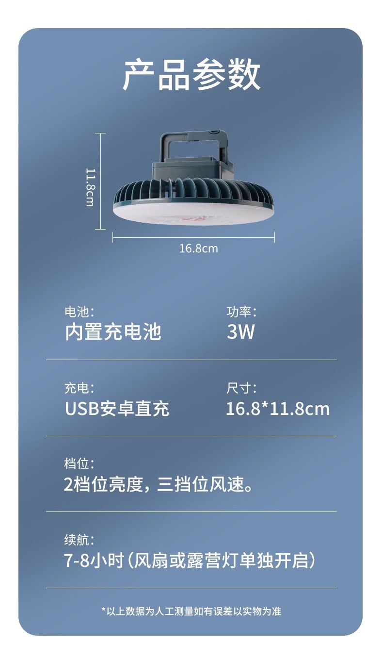 • 다기능 팬 캠핑 라이트 충전 헤드