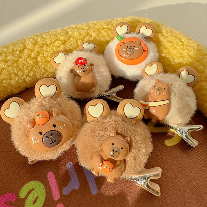 Capibala 헤어 볼 헤어핀 귀여운 만화 통통한 카피 바라 사랑 헤어핀 가을과 겨울 우유 티 컬러 깨진 헤어 클립