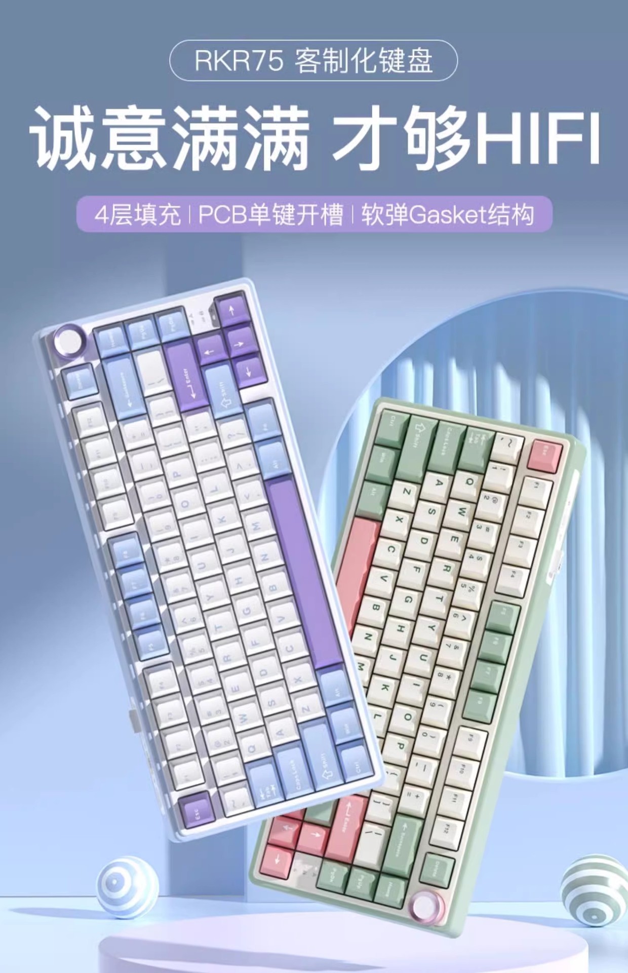 RKR75 맞춤형 무선 기계 키보드 블루투스 3 모드 가스켓 핫 플러그 RGB 소녀 E-스포츠 게임스토어 가기