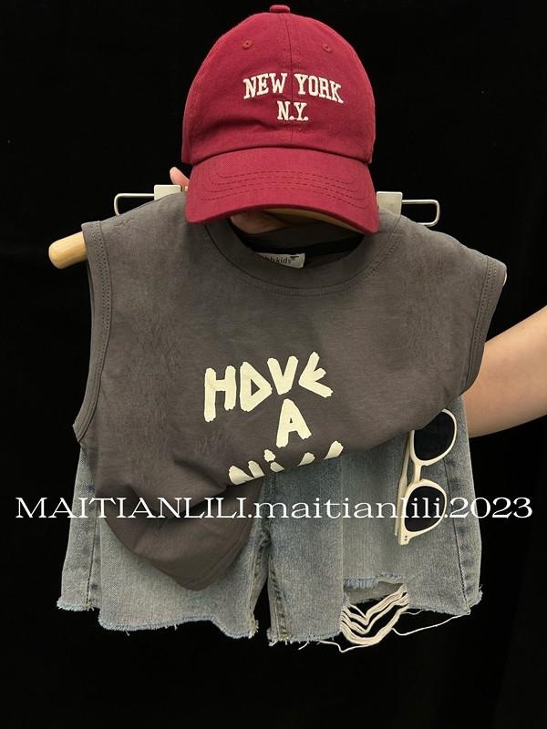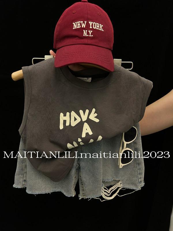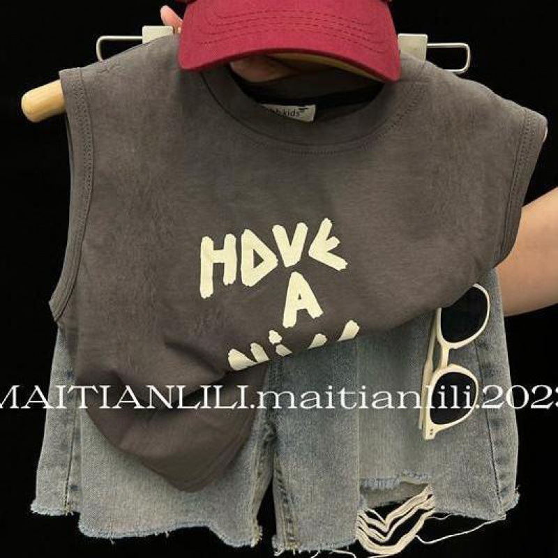 여름 아동복 어린이 조끼 세트 새로운 인쇄 된 유니섹스 얇은 아기 민소매 반바지 투피스 유행 세트스토어 가기