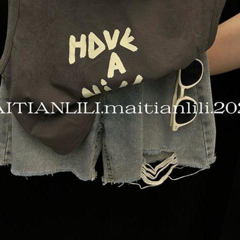 • 인쇄 된 조끼 자른 청바지