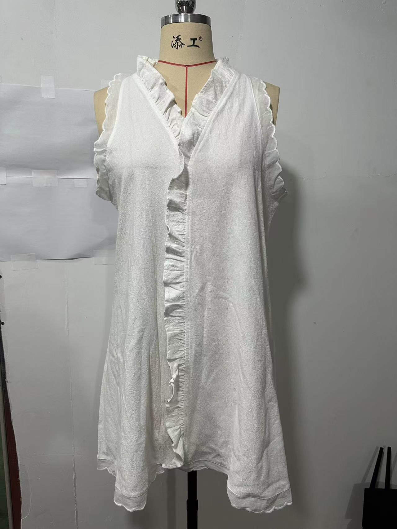 국경 간 아마존 독립 역 유럽과 미국의 새로운 여성 캐주얼 코튼 및 리넨 솔리드 컬러 원피스 자수 러플 스커트스토어 가기