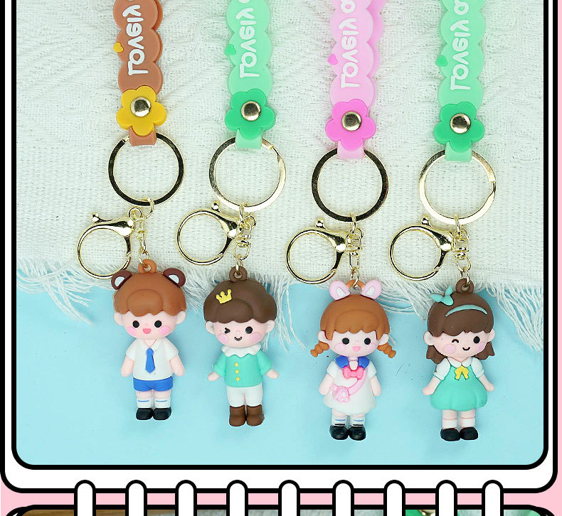 창의적인 만화 귀여운 소녀 소년 열쇠고리 인형 펜던트 어린이 자동차 키 열쇠고리 가방 장식품