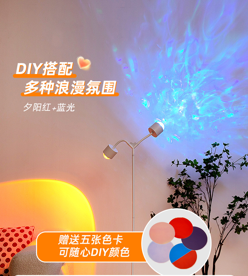다이나믹 워터 리플 일몰 레드 홈 스토어 라이브 방송 호텔, 분위기 스파클링 일몰 레드 광채 강화