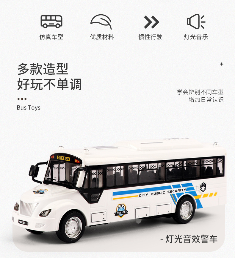 어린이 버스 스쿨 버스 특수 경찰차 모델 관성 장난감 가벼운 음악 자동차 모델 소년이 문을 열 수 있습니다스토어 가기
