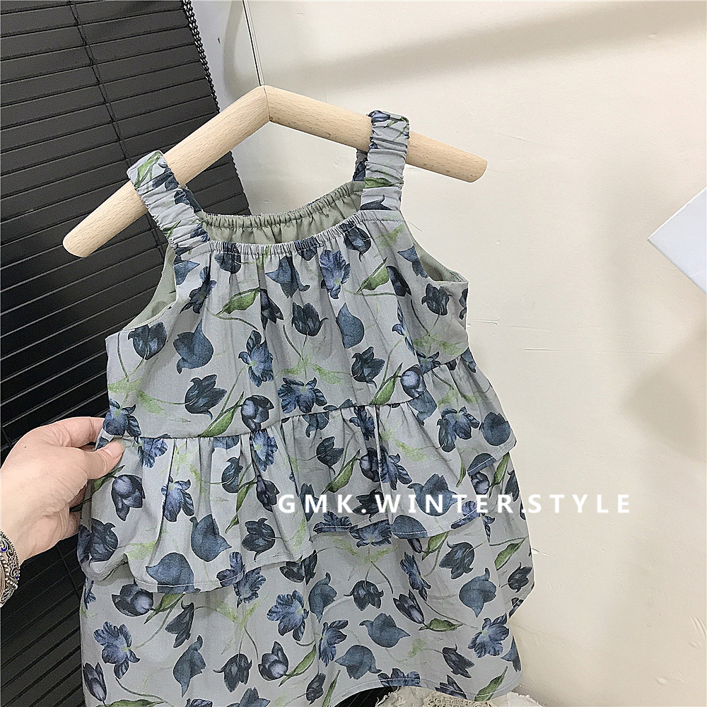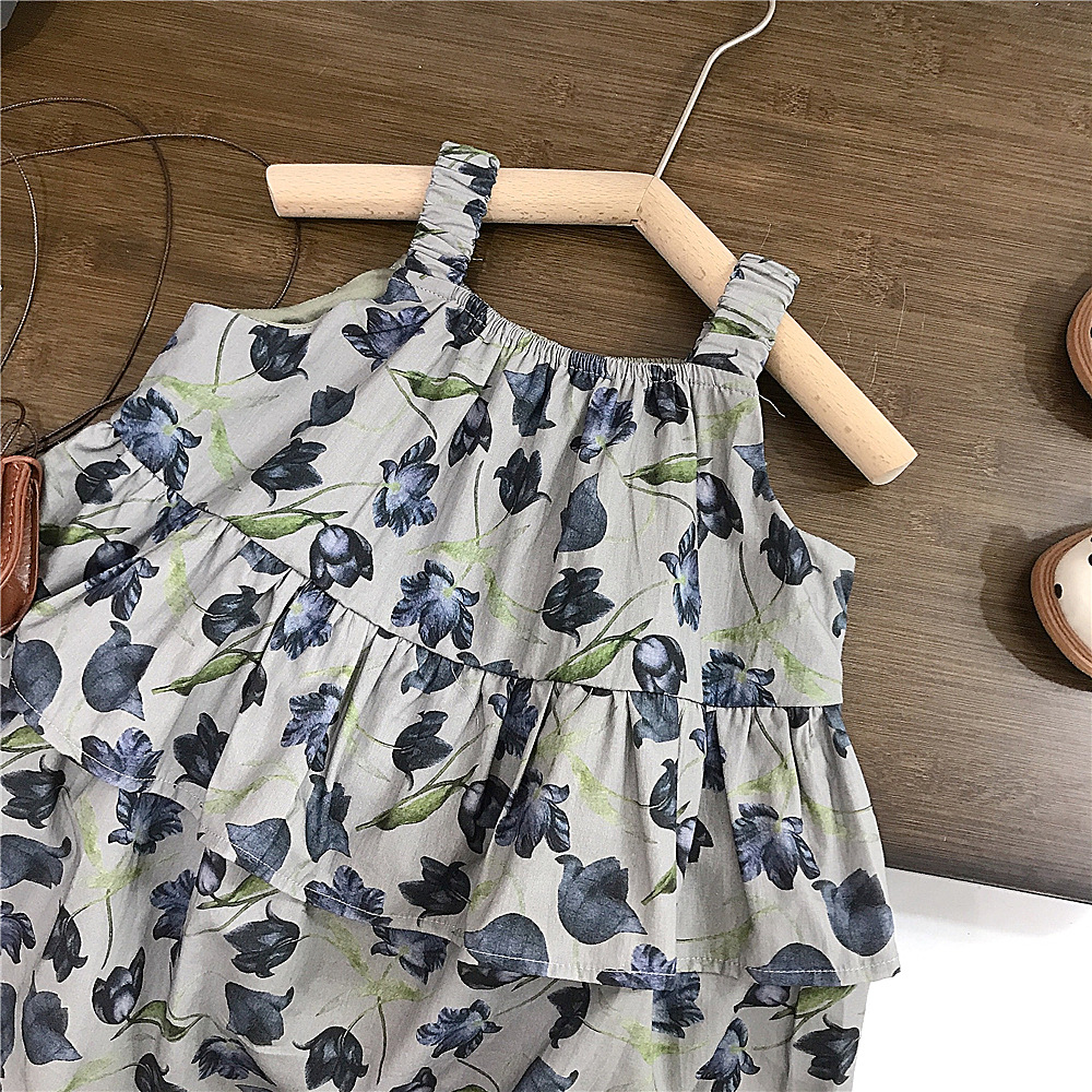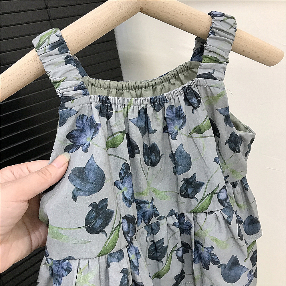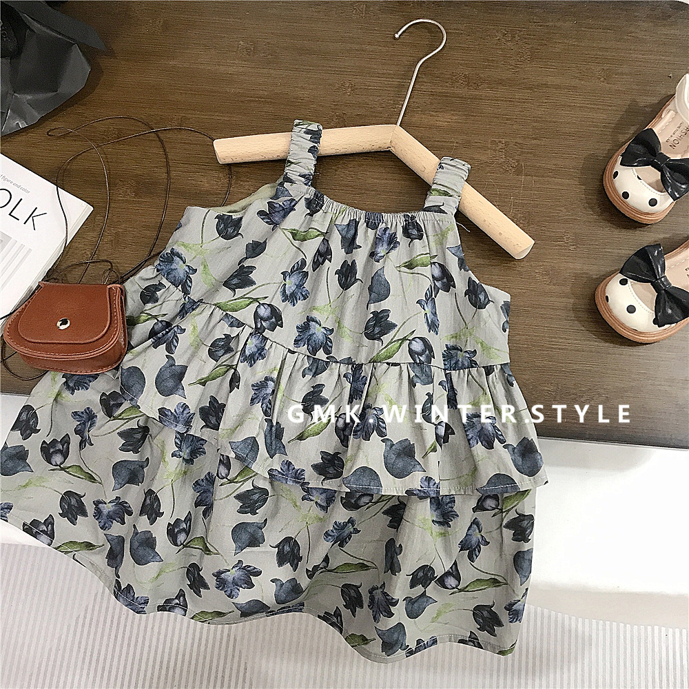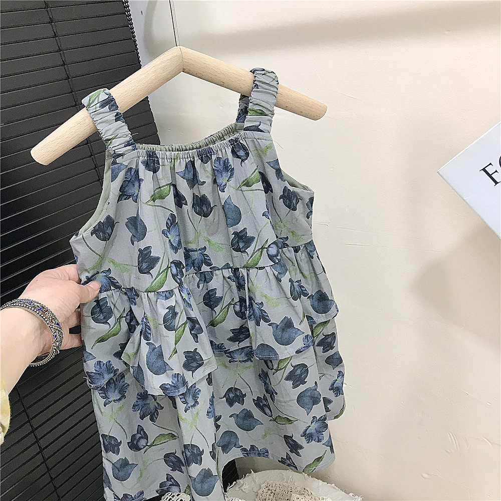 홀터 걸스 쿨한 여름 꽃 치마 한국 아동복 서양식 올매치 해변 휴가 스커트 새로운 대외 무역