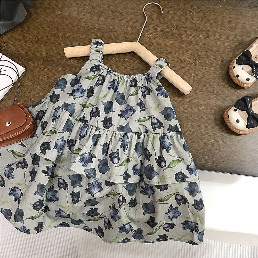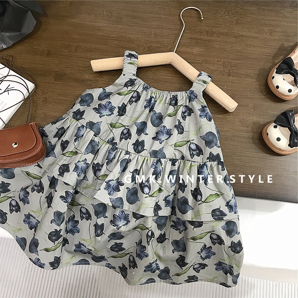 홀터 걸스 쿨한 여름 꽃 치마 한국 아동복 서양식 올매치 해변 휴가 스커트 새로운 대외 무역스토어 가기