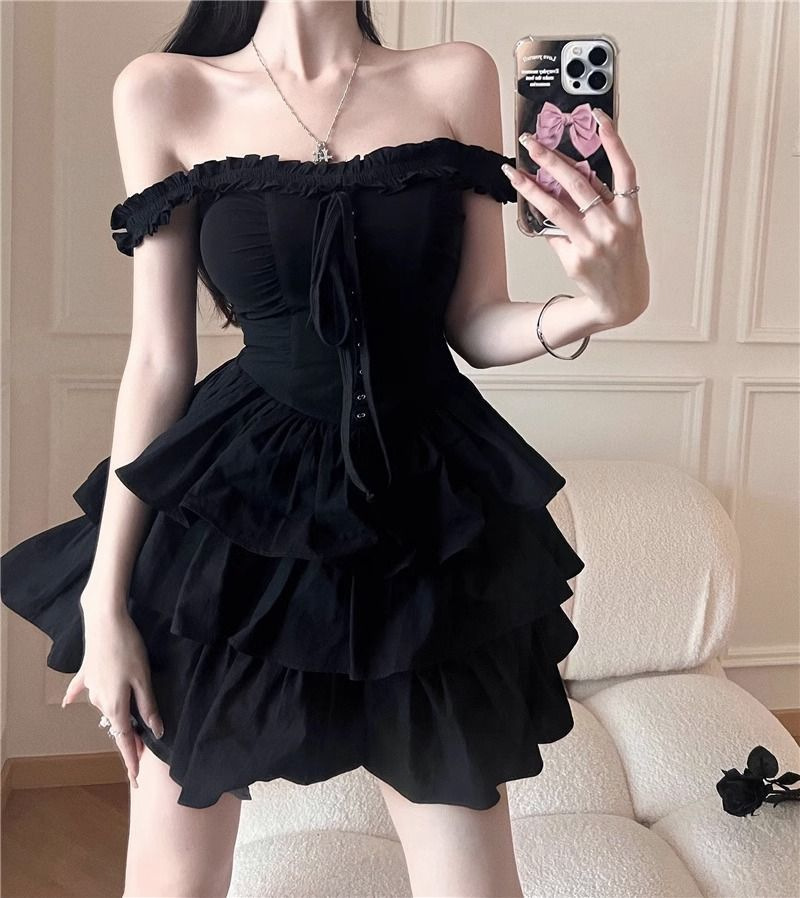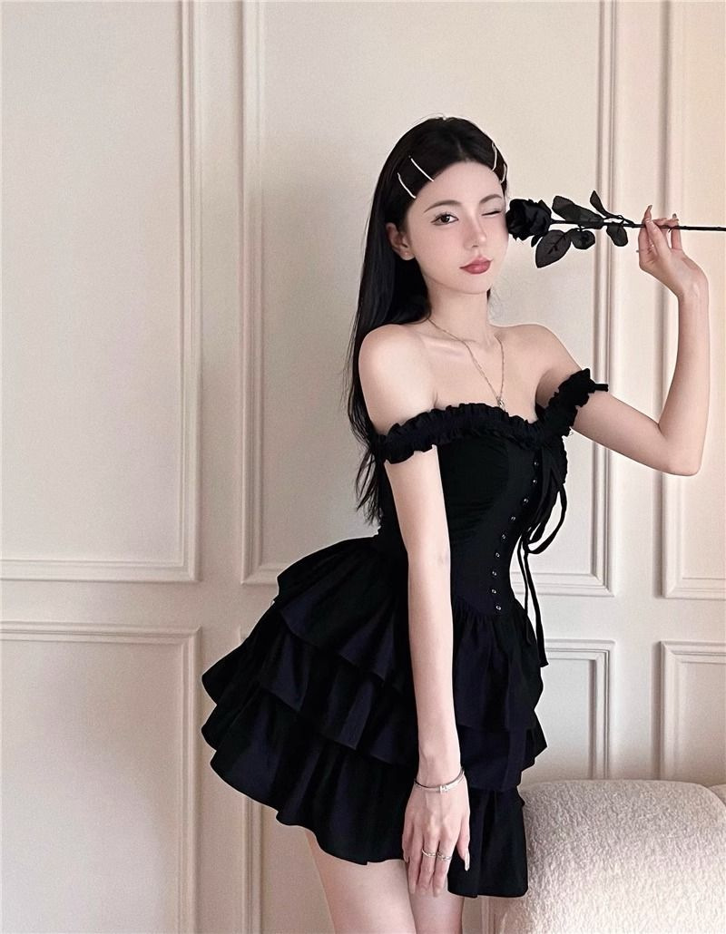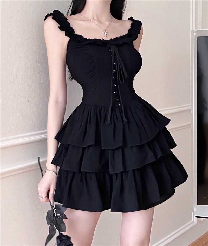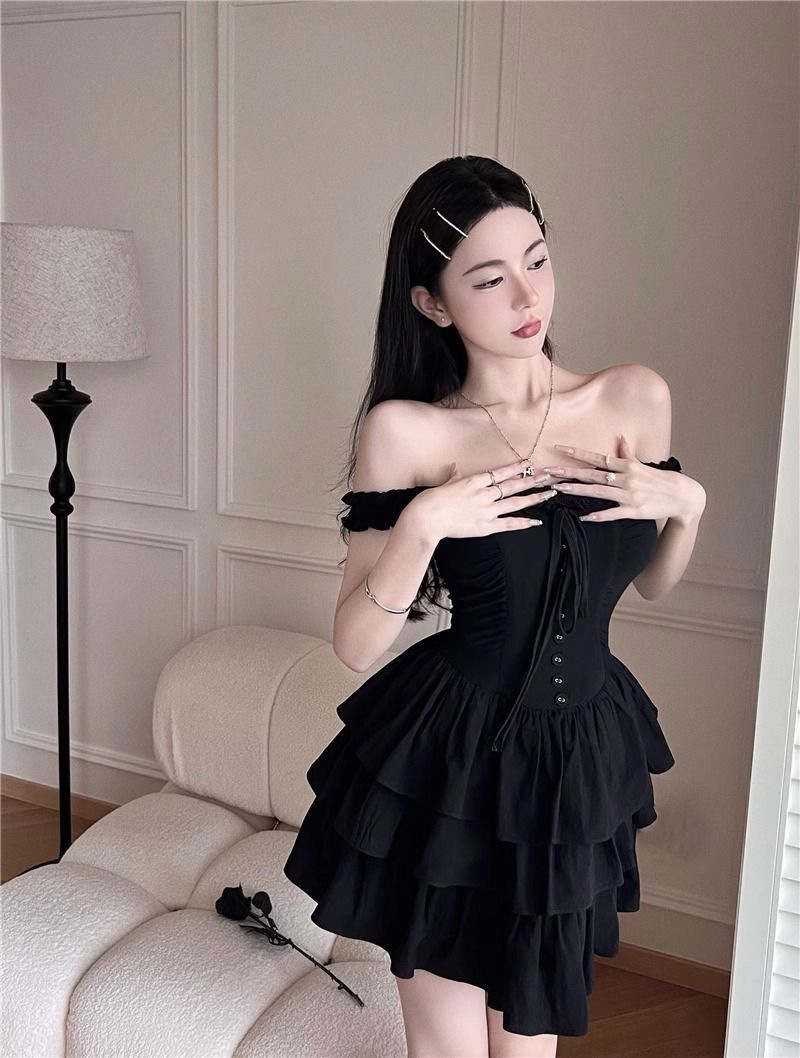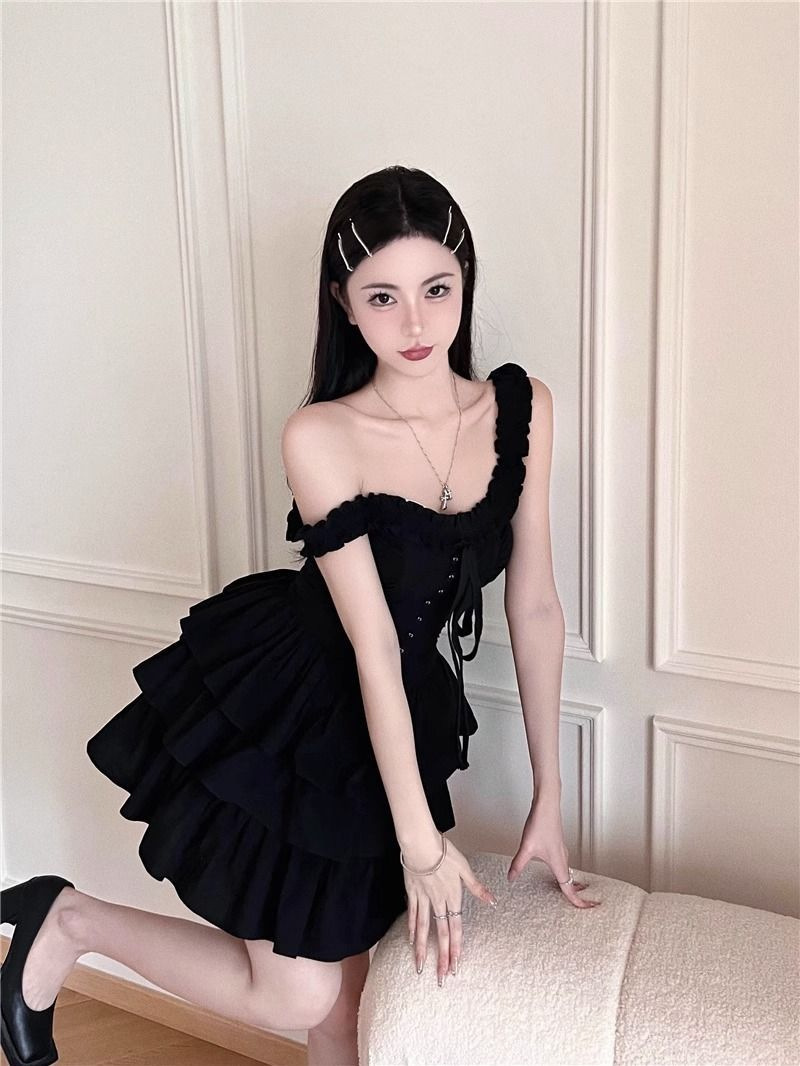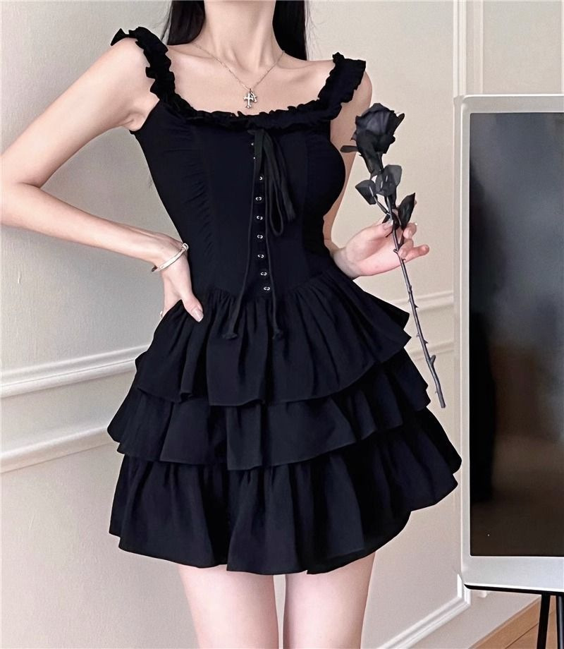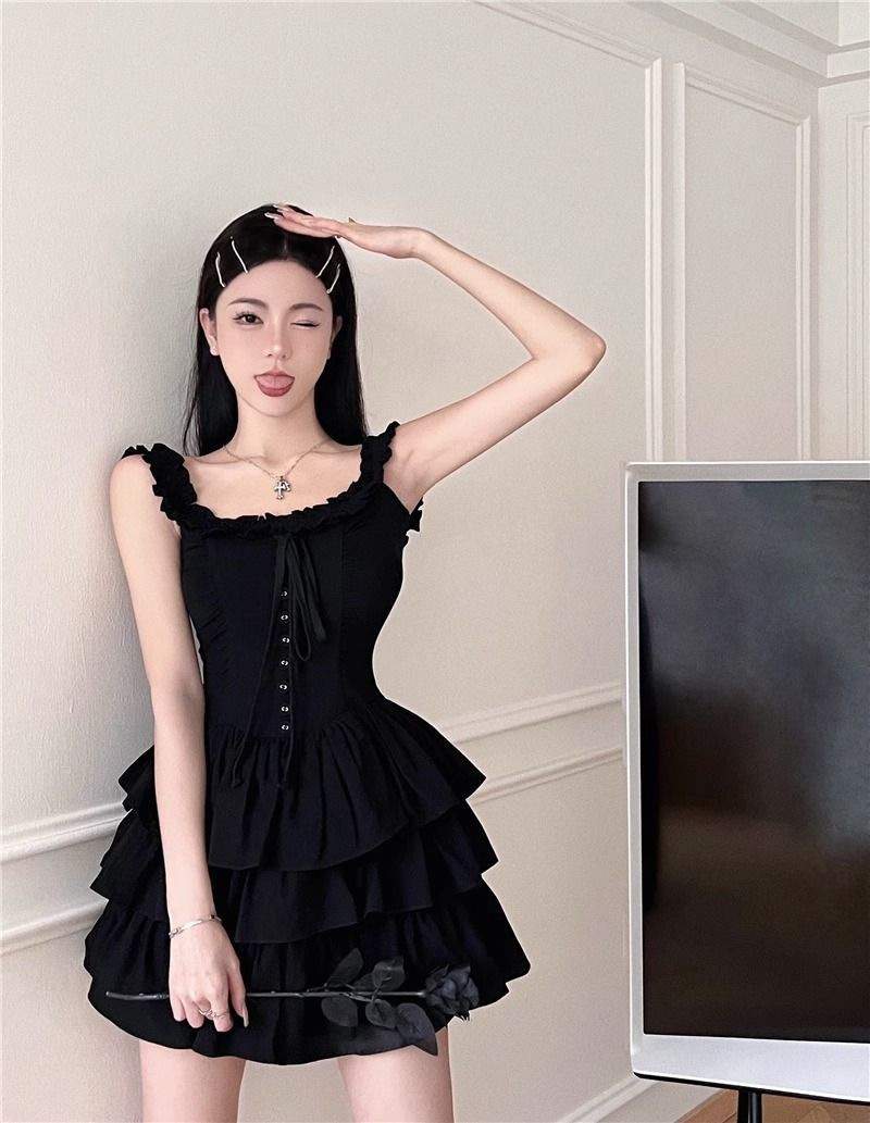 프랑스 헵번 스타일 하이 엔드 케이크 스커트 여성 여름 새로운 스타일 순수한 달콤하고 매운 허리 슬리밍 첫사랑 슬링 원피스스토어 가기