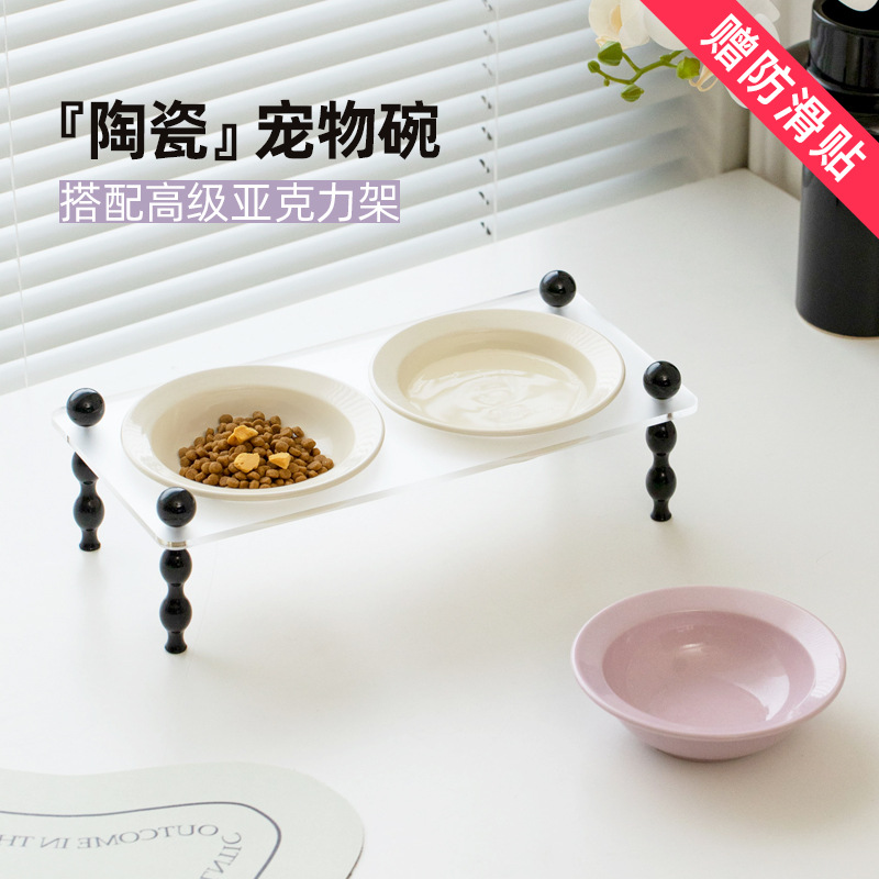 프랑스 세라믹 고양이 그릇 애완 동물 그릇 높은 발 대용량 안티 노크 고양이 음식 그릇 자궁 경부 척추 보호 물 그릇 더블 그릇 개 분지