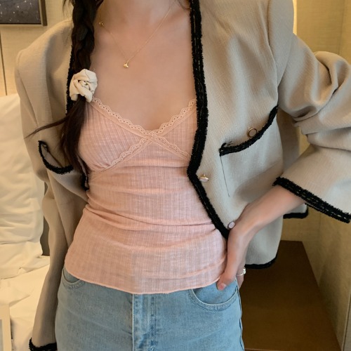 6833 순수한 욕망 스타일 내부 레이스 벨트 가슴 패드 카미 솔 조끼 여름 슬리밍 아우터웨어 아름다운 등 달콤한 속옷스토어 가기