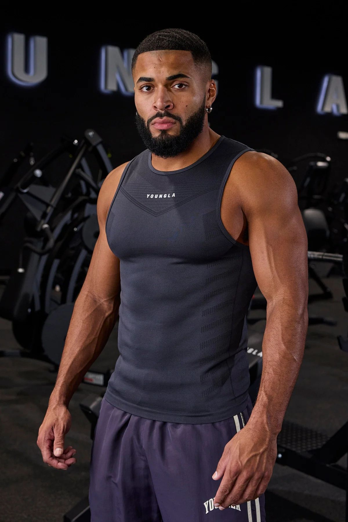 YOUNGLA美式新款运动健身慢跑者男士背心速干透气弹力训练无袖T恤