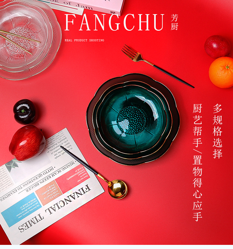 야채 플레이트 가정용 고급 유리 라운드 딥 플레이트 라이브 공급 꽃 9 인치 만두 판