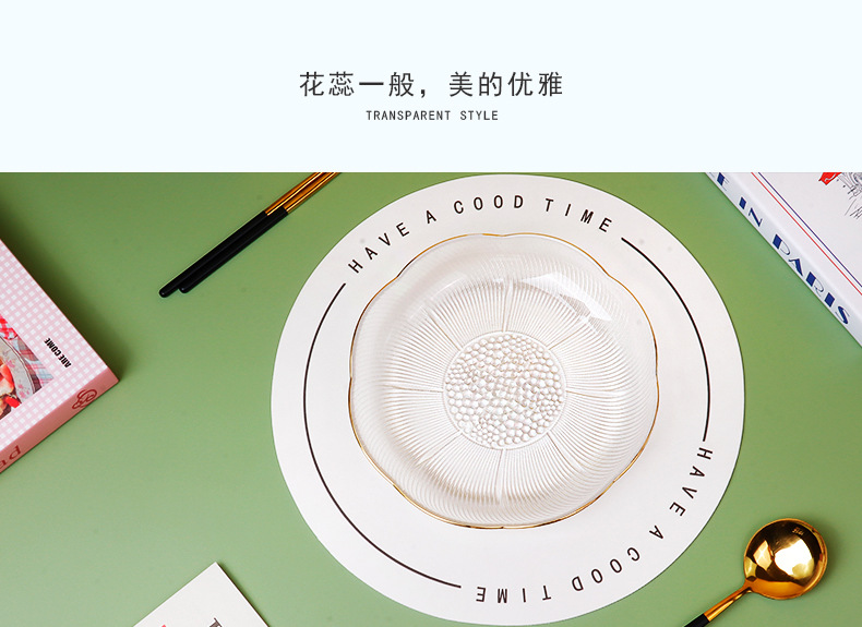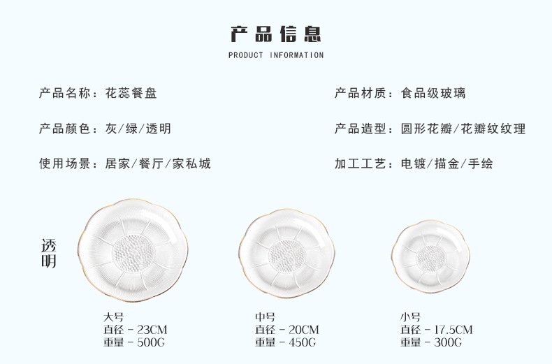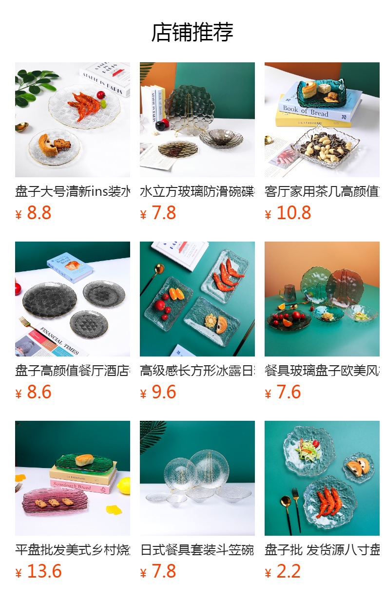 菜盘子一件起批家用高级感玻璃圆形深盘直播货源花卉9寸饺子盘