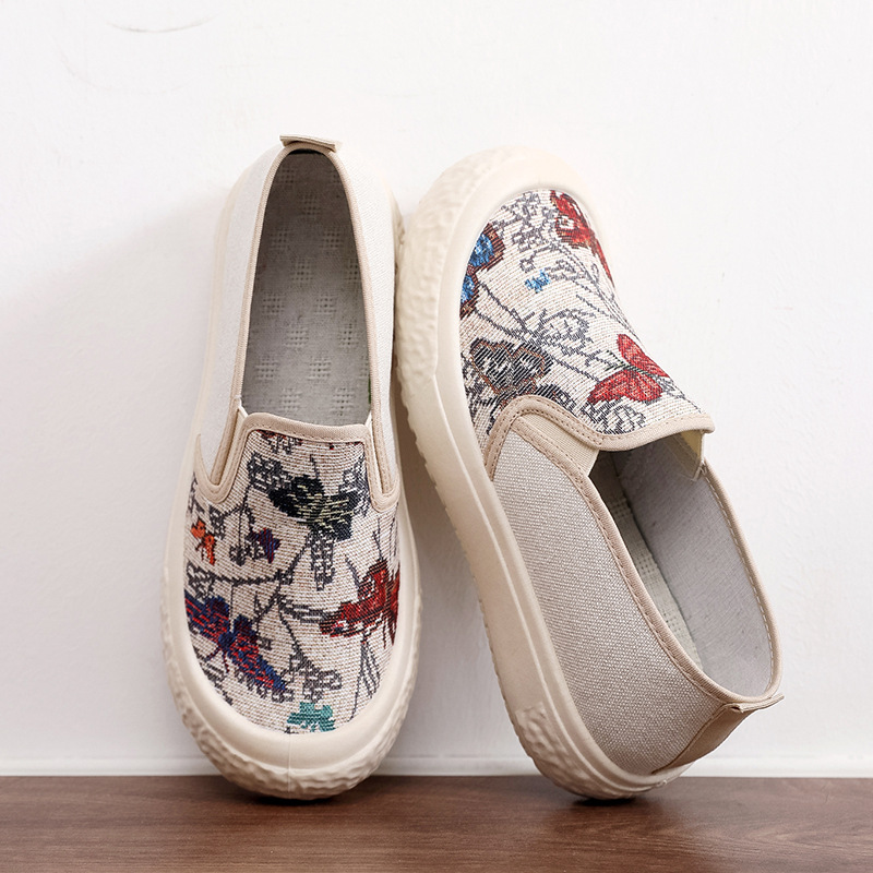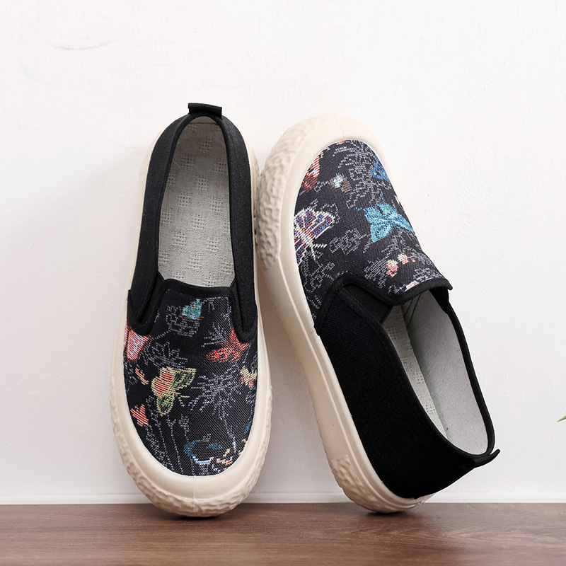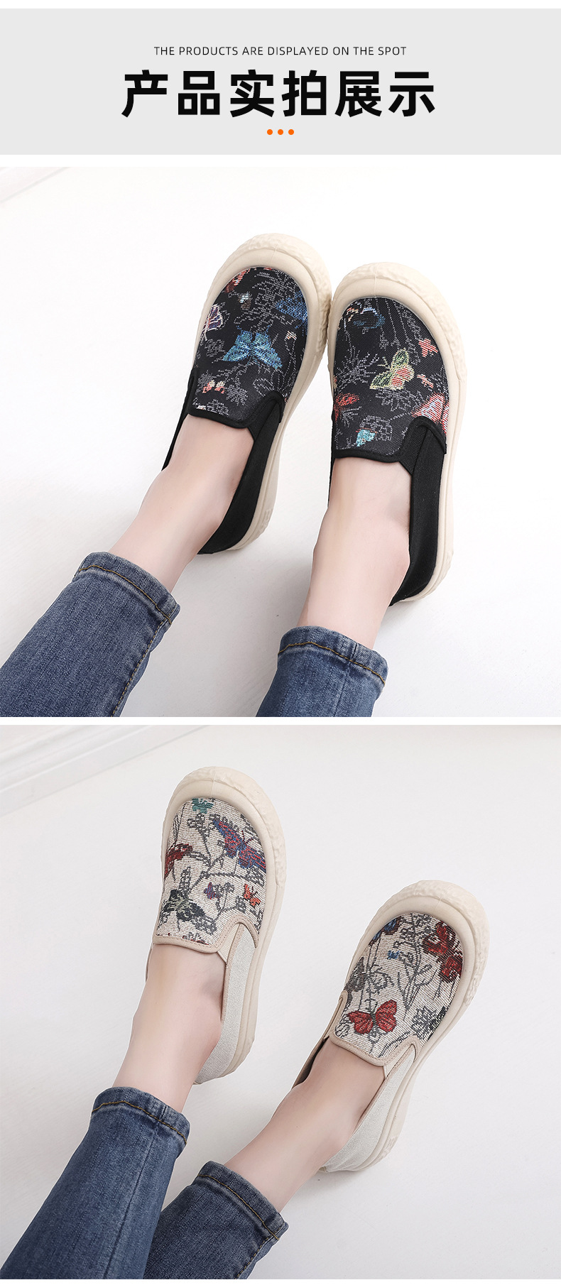 봄과 여름 새로운 어부 신발 캔버스 여성 신발 패션 모든 경기 중국 스타일 캐주얼 두꺼운 밑창 게으른 한 단계 싱글 레이어 신발스토어 가기