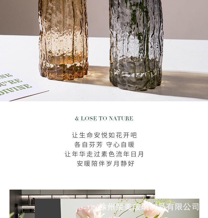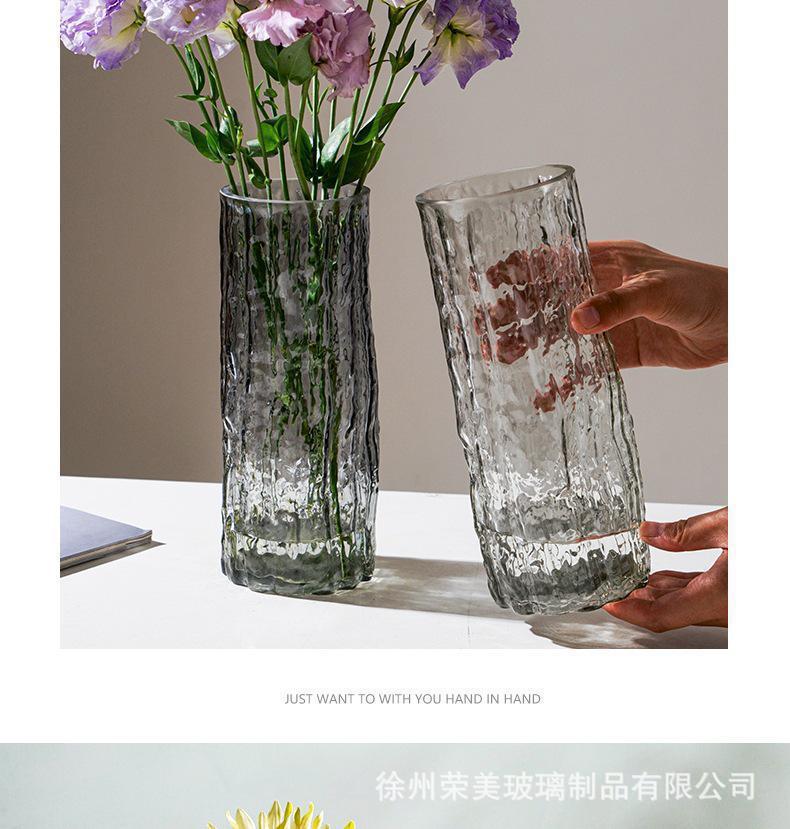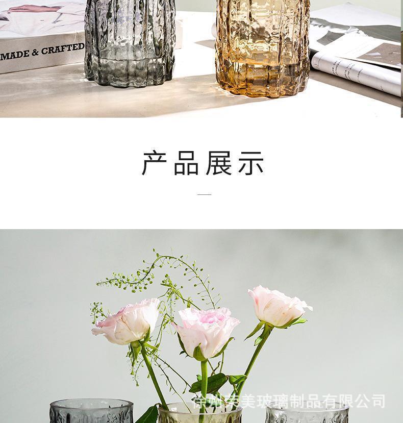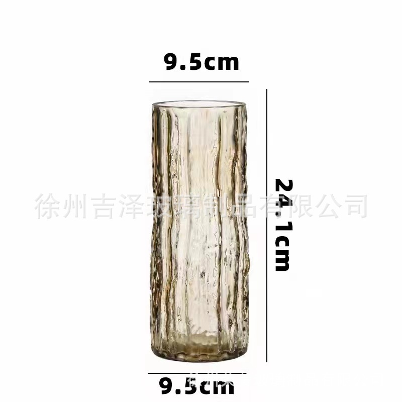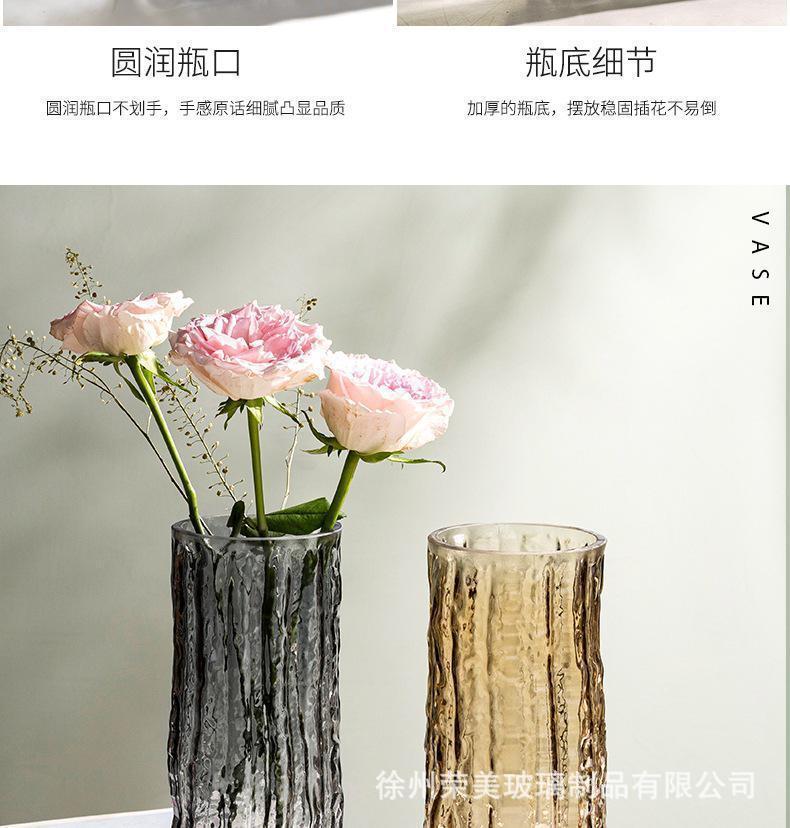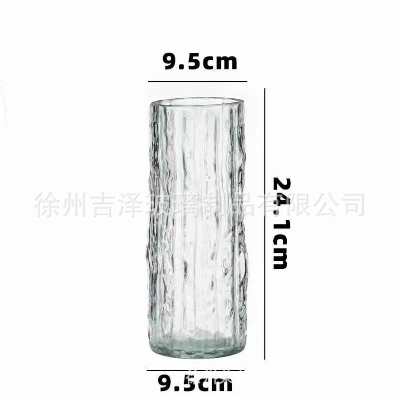 고급 감각 유리 꽃병 빙하 패턴 꽃 수경 꽃병 창조적 인 직선 꽃 배열 큰 직경 장식 꽃병