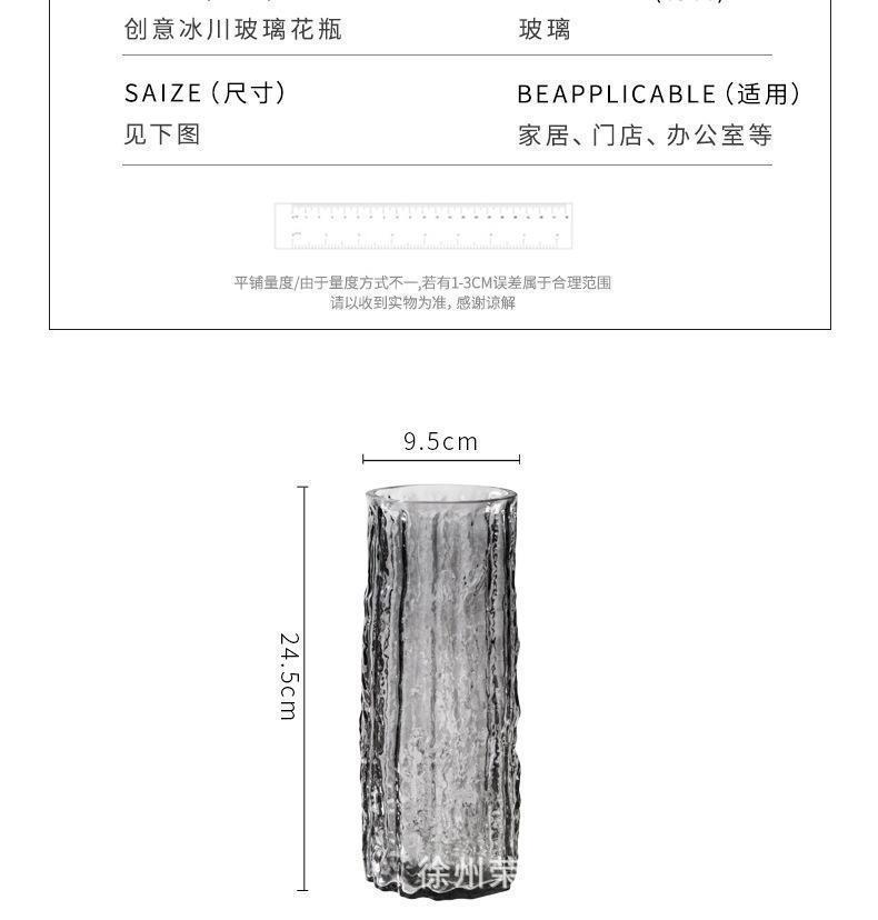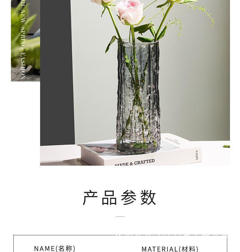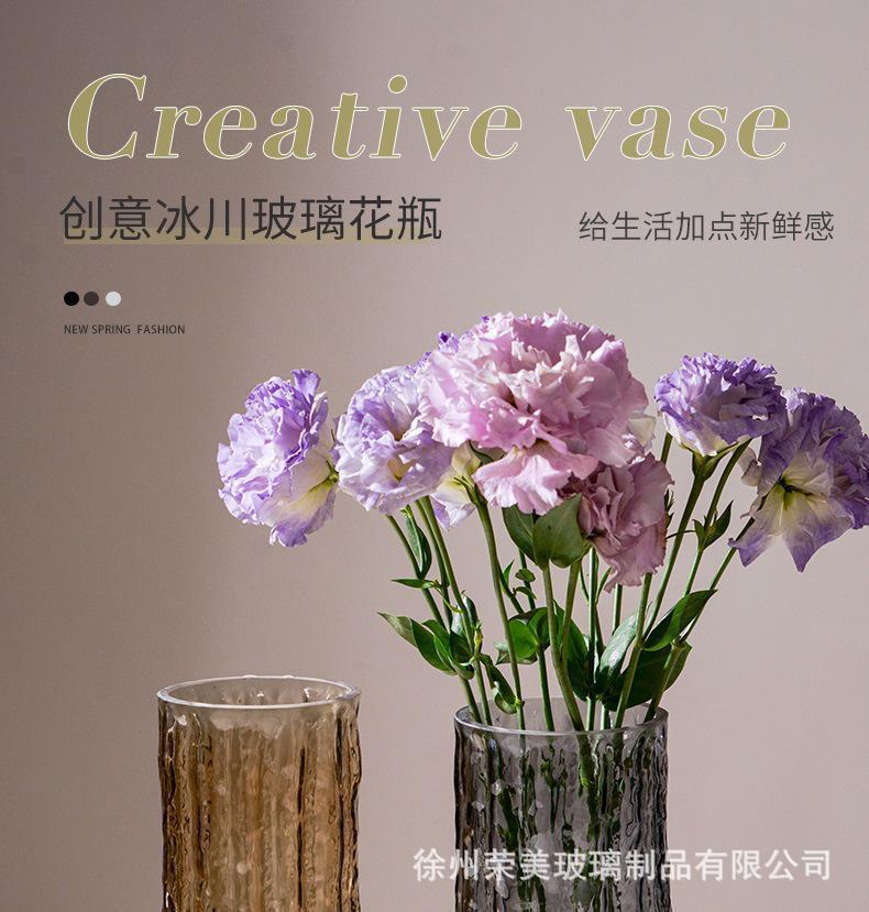 고급 감각 유리 꽃병 빙하 패턴 꽃 수경 꽃병 창조적 인 직선 꽃 배열 큰 직경 장식 꽃병스토어 가기