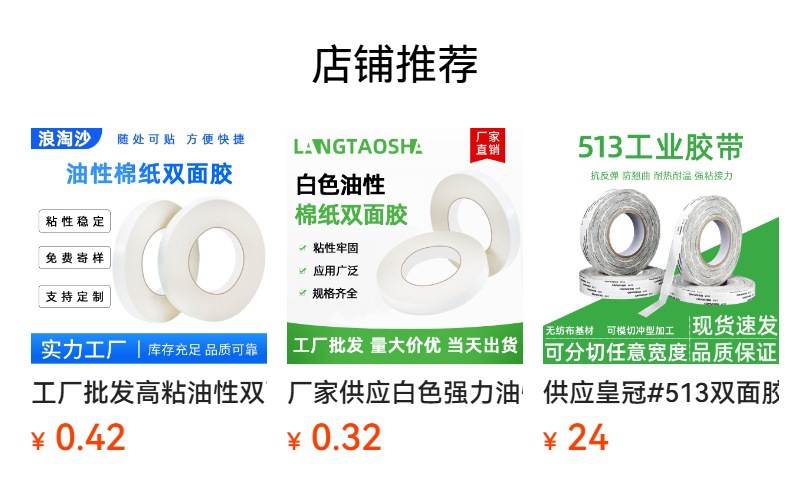 Langtaosha 도매 유성 흰색 양면 접착 사무실 문구 고점도 면화 종이 양면 접착 수동 사무실 테이프스토어 가기