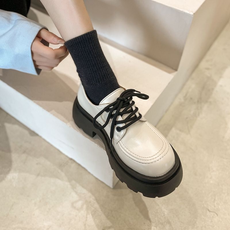 영국 스타일 두꺼운 밑창 가죽 신발 여성의 2023 새로운 봄 올 매치 블랙 Jk 싱글 레이어 신발 플랫폼 Loaf Loafers Ins 트렌디