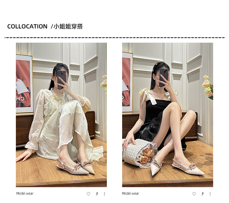 니치 보우 발가락 샌들 여성의 2024 년 봄과 여름 새로운 낮은 발 뒤꿈치 빈 프랑스 뾰족한 리벳 신발 여성스토어 가기