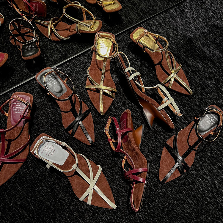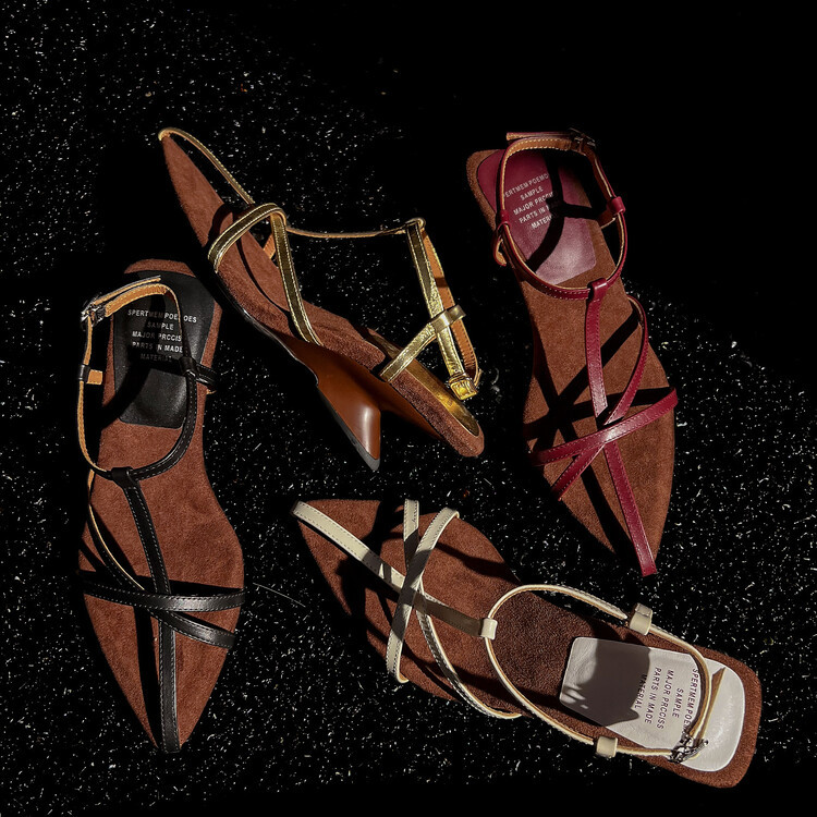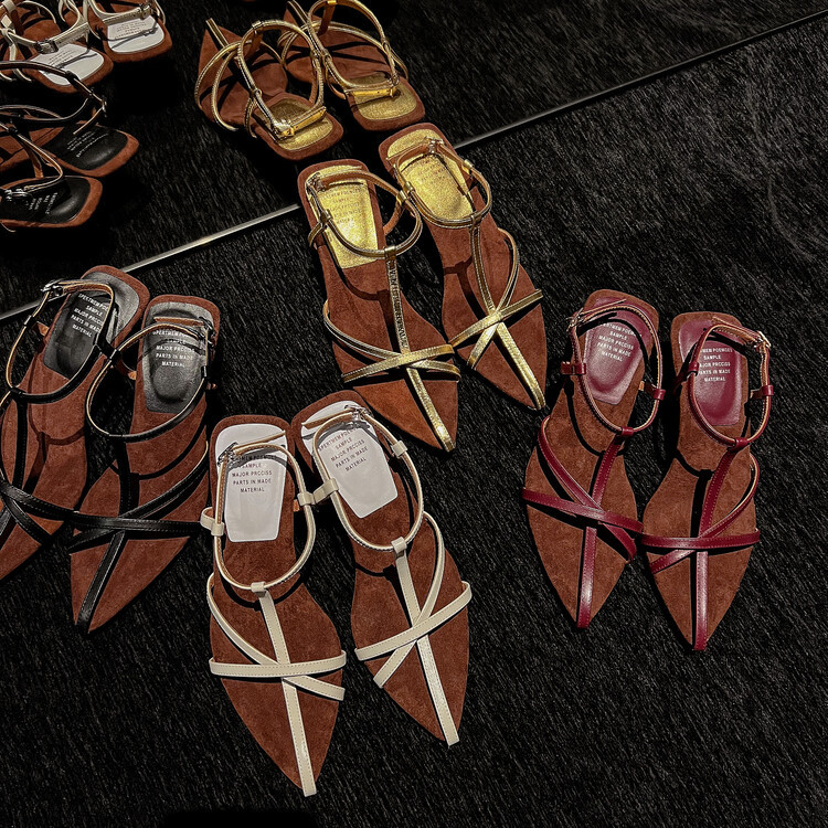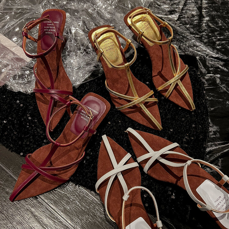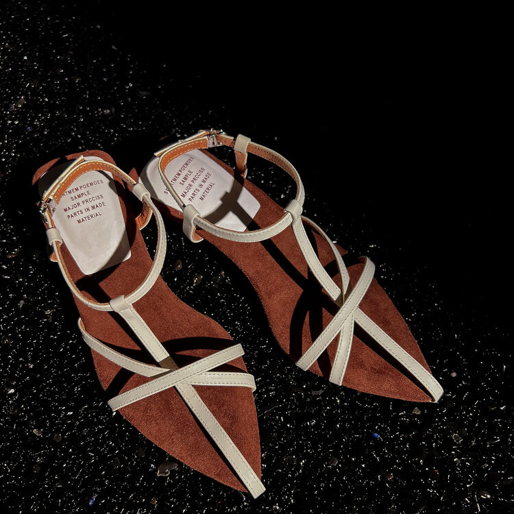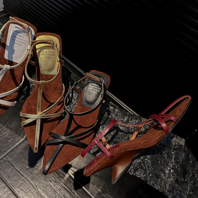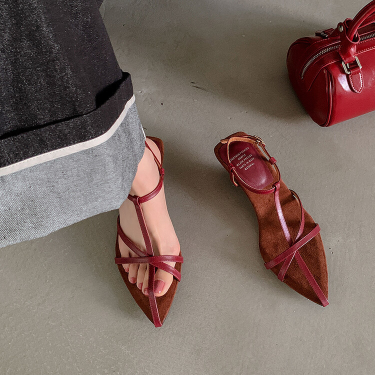 크로스 T 자형 하이힐 샌들 여성 신발 패션 신발 여름 새로운 Cowhide 스트랩 오픈 발가락 모양의 여성용 샌들스토어 가기