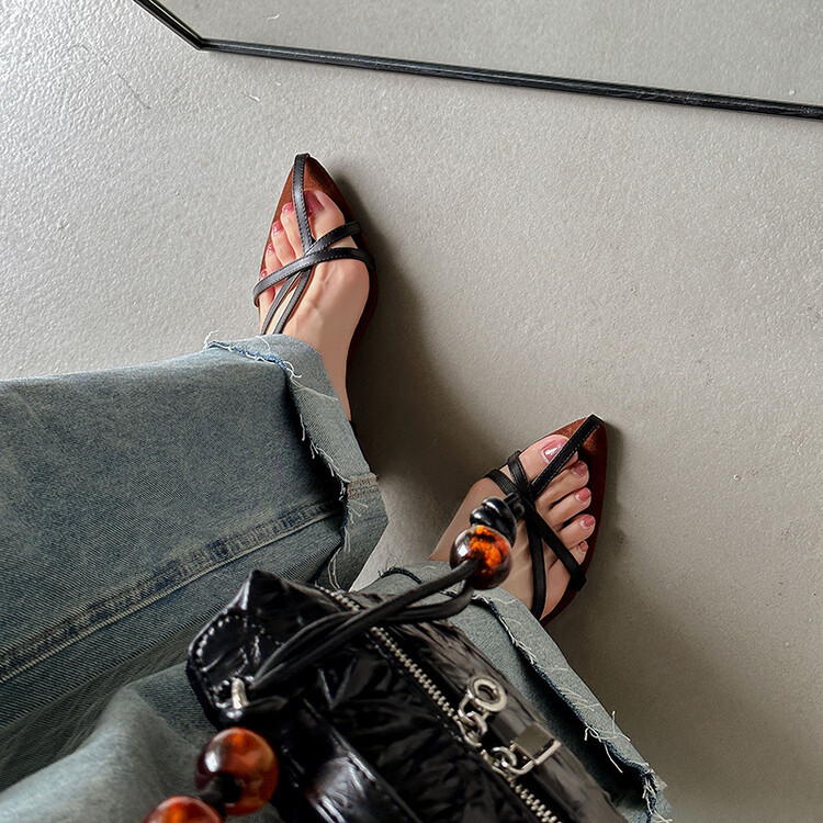 크로스 T 자형 하이힐 샌들 여성 신발 패션 신발 여름 새로운 Cowhide 스트랩 오픈 발가락 모양의 여성용 샌들