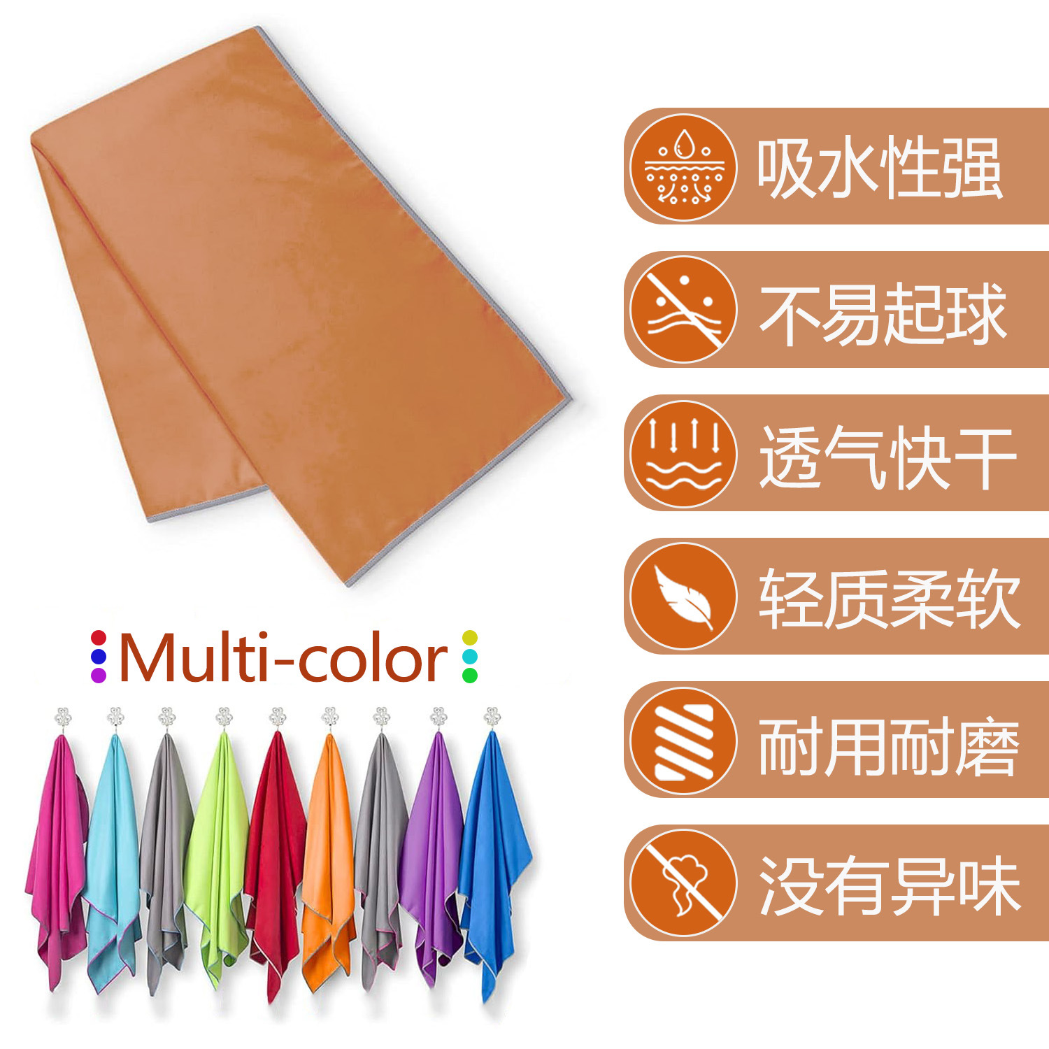 도매 여름 땀 흡수성 멸균 야외 자외선 차단제 수영 수건 단색 양면 벨벳 스포츠 타월 체육관 땀 닦아
