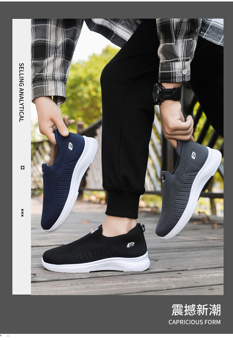 새로운 남성용 신발, 봄 여름용 고탄성 메쉬 캐주얼 슈즈, 패셔너블한 슬립온 소프트솔 양말형 운동화스토어 가기
