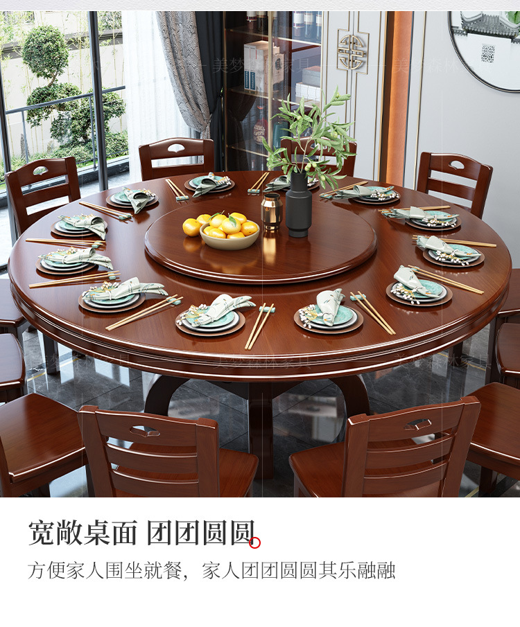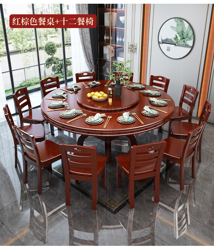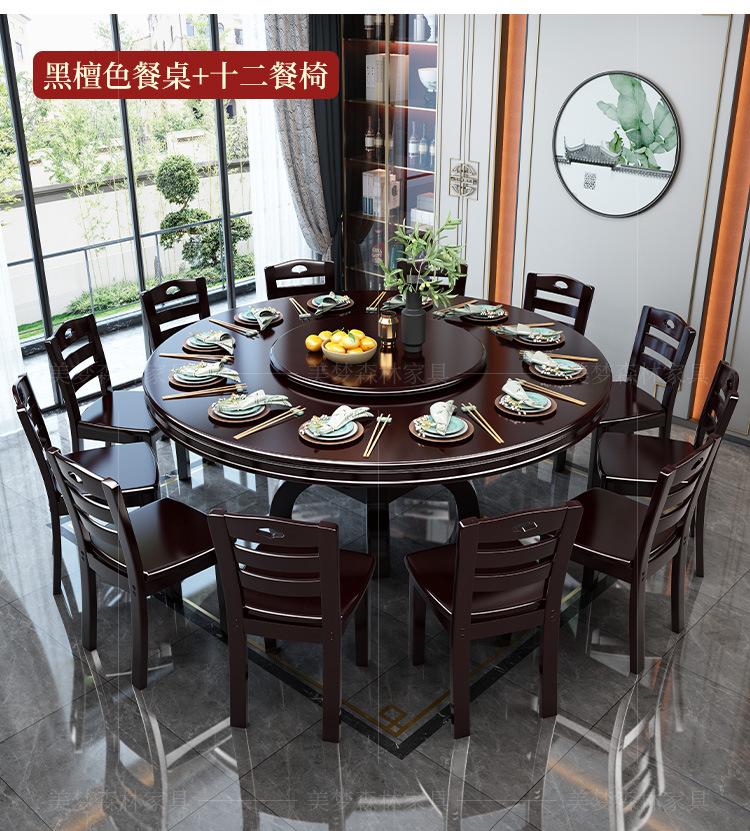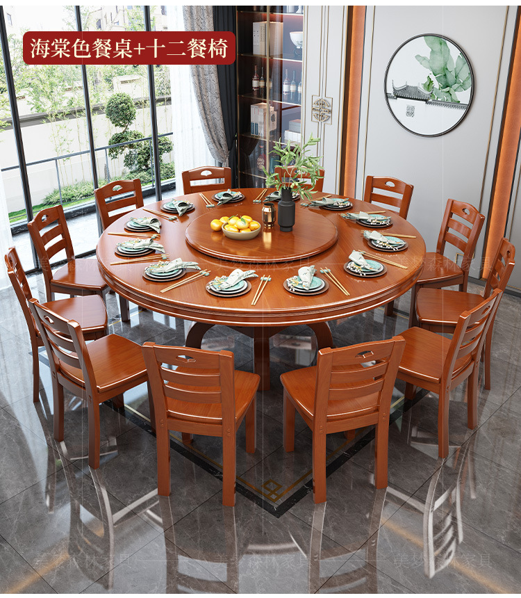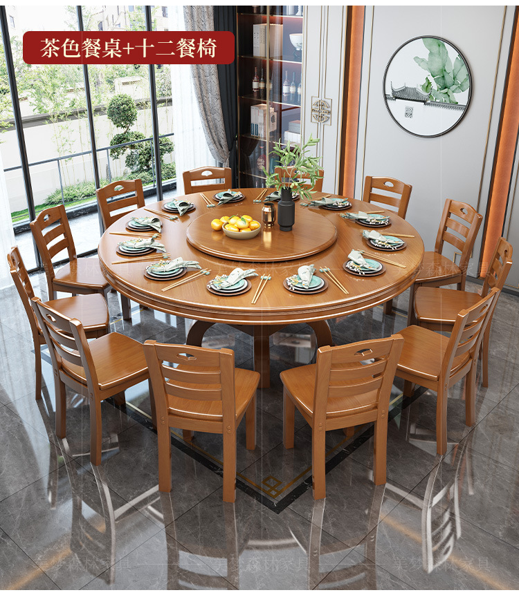 B & 그레이트 라운드 식탁 및 의자 조합 홈 현대 간단한 중국 스타일 10 인 농촌 쌀 테이블 단단한 나무 원탁스토어 가기