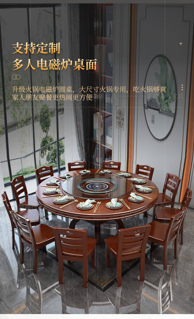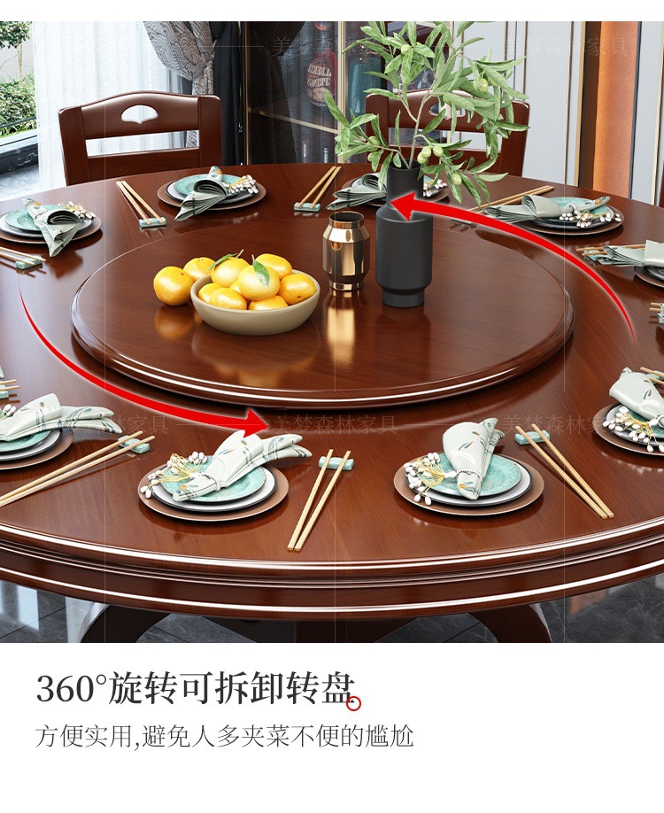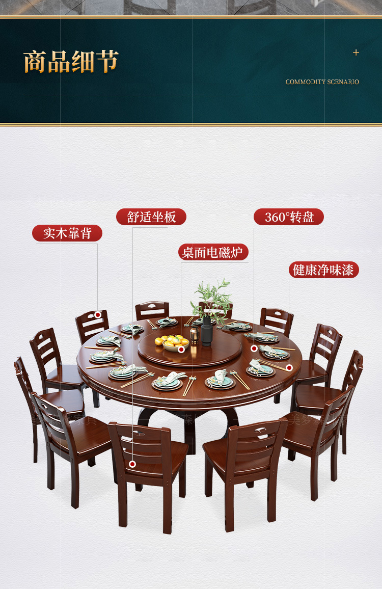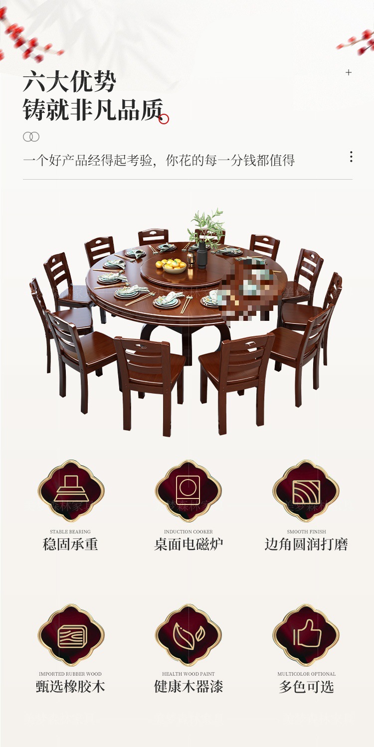 B & 그레이트 라운드 식탁 및 의자 조합 홈 현대 간단한 중국 스타일 10 인 농촌 쌀 테이블 단단한 나무 원탁스토어 가기