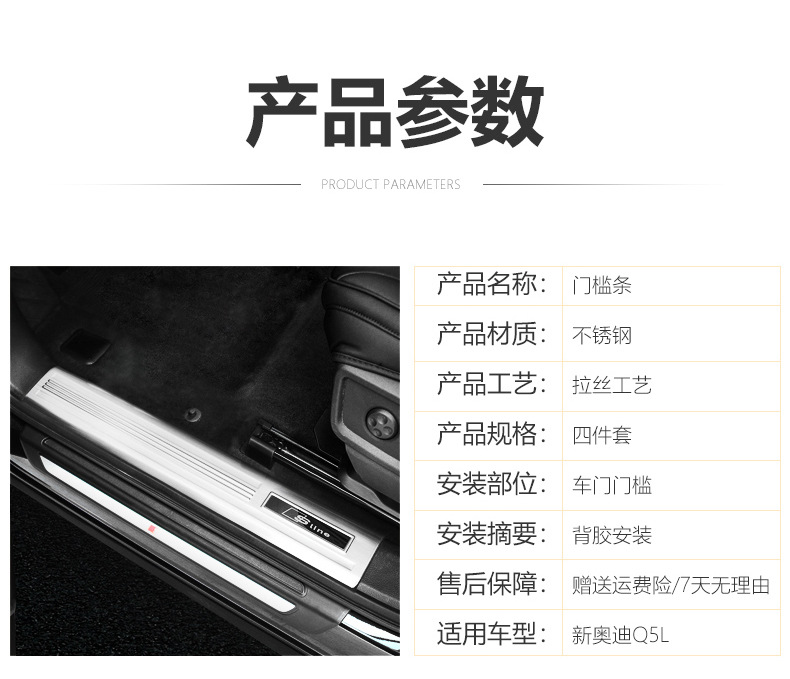 18-24 아우디 Q5L 임계 바 수정 안티 스테핑 보호 스티커 스테인레스 스틸 환영 페달에 적합스토어 가기