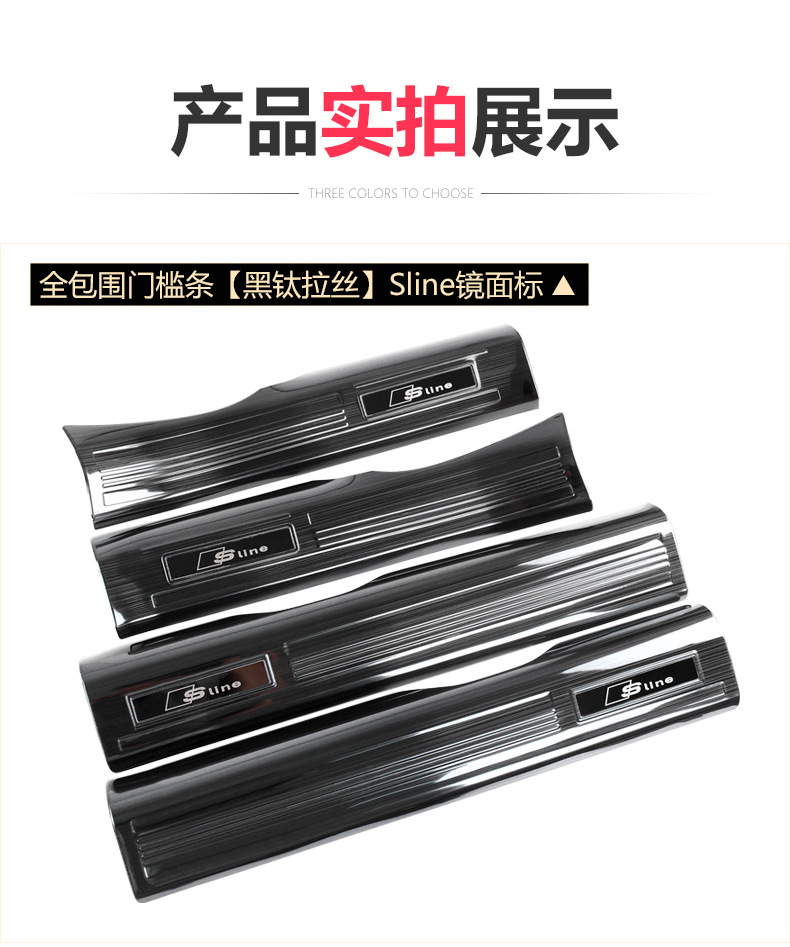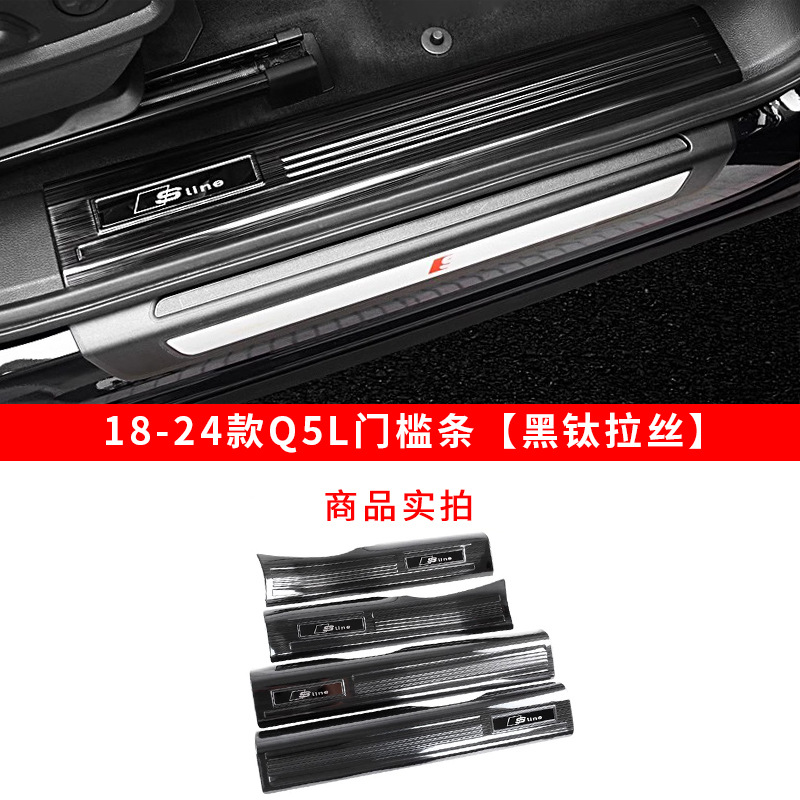 • 18-24 Q5L 완전 둘러싸인 도어 실 스트립 [블랙 티타늄 브러시드] 스테인레스 스틸 Sline 로고