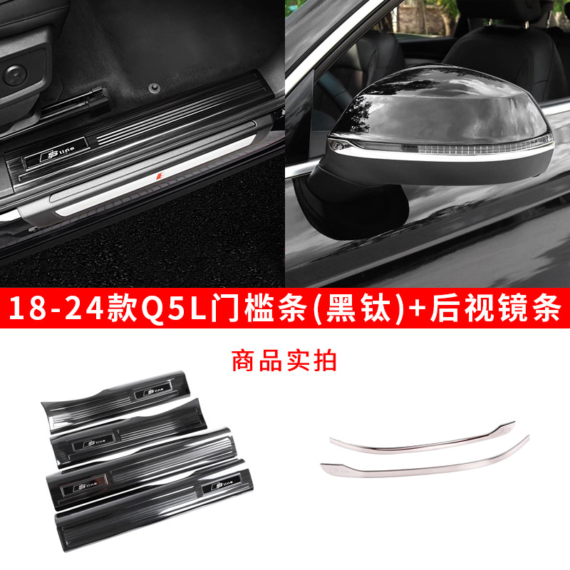 • 18-24 Q5L 임계값 스트립 [블랙 티타늄 브러시드] + 백미러 충돌 방지 스트립 [실버 미러
