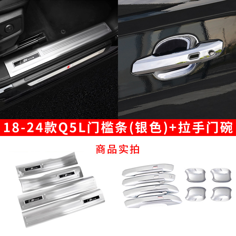 • 18-24 Q5L 임계값 스트립 [실버 브러시드] + 핸들 도어 볼 [실버 미러]